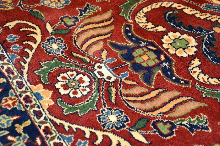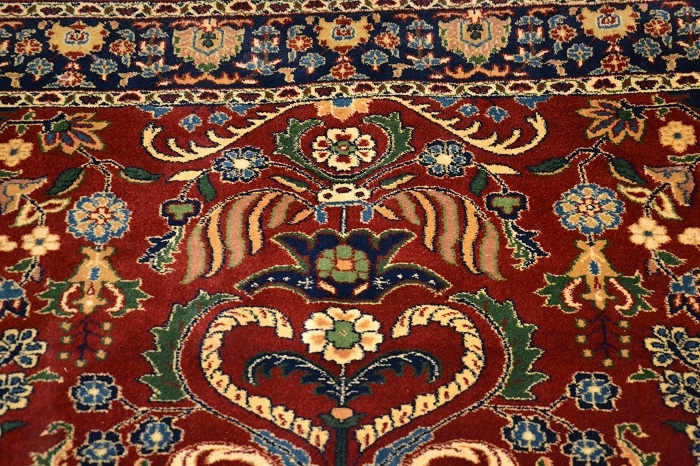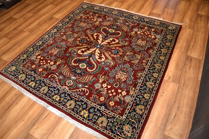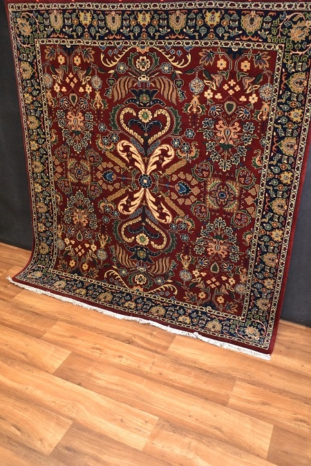 Высококлассный и исключительно красивый, оригинальный индийский ковер KASHAN - соткан вручную и изготовлен из овечьей шерсти высочайшего качества, подтвержденного сертификатом качества и происхождения, с плотно скроенным блестящим ворсом. Восточный дизайн (внушительный медальон в окружении прекрасных цветочных композиций) и гармонично контрастирующие цвета позволяют прекрасно смотреться как на полу, так и на стене.