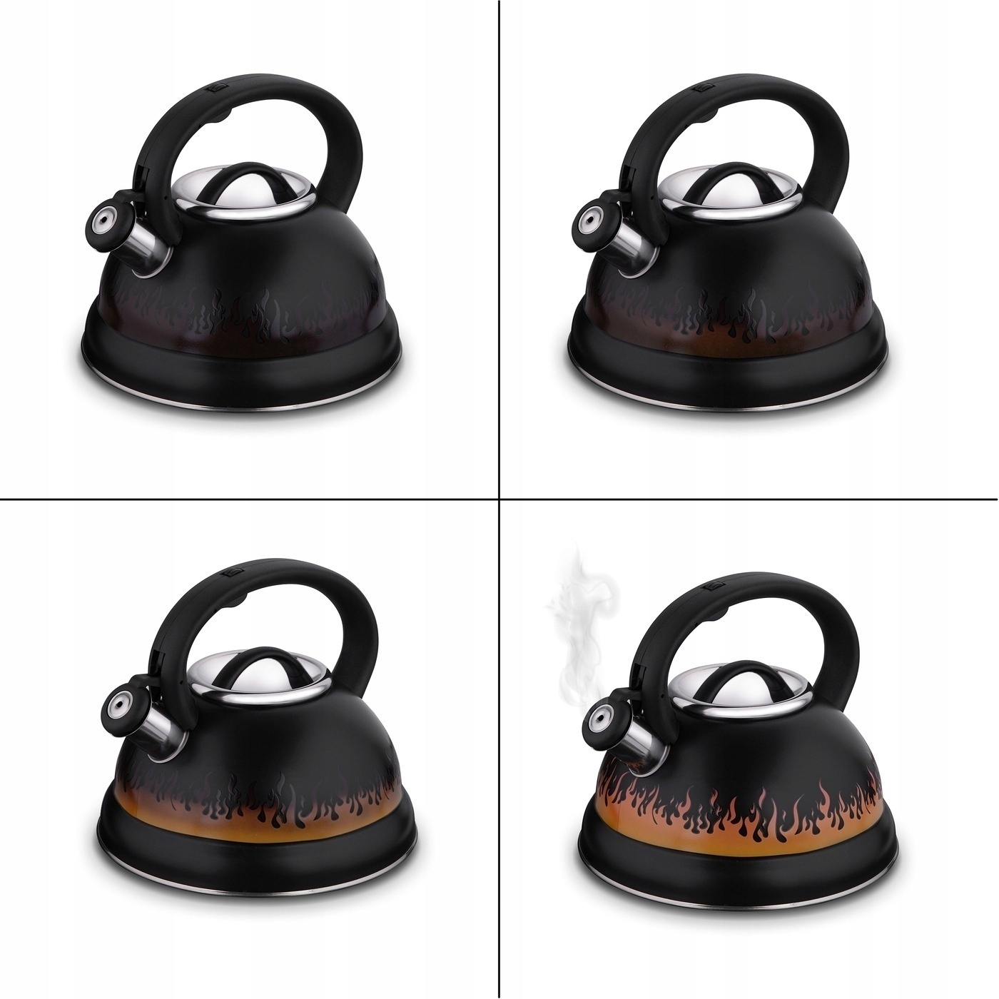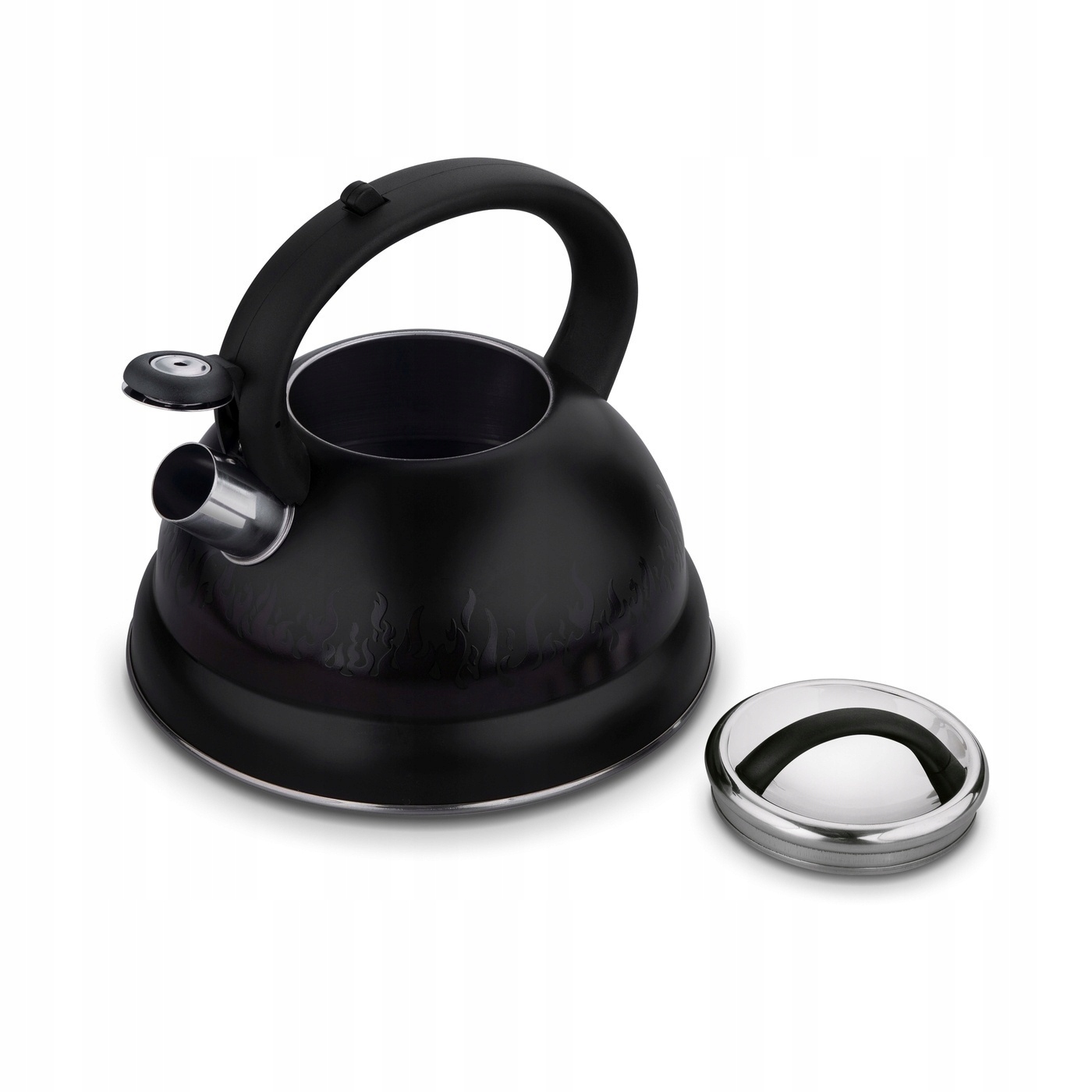 Черный нержавеющий нержавеющий чайник Konghoffer Misti 2,7 L отлично смотрится на плите, так что вы получаете стильное кухонное оборудование. Съемное покрытие, наклонный свисток и ручка бакелита медленно нагревание облегчают приготовление напитков и обеспечить безопасность. Нержавеющая сталь обеспечивает чайник с долговечностью, иммунитетом, а также заботится о здоровье ваших близких (не влияет на свойства воды). Все, что вам нужно, это одна рука, чтобы заполнить чайник или залить чашками кипящей водой. Вы можете легко спустить его. Вы будете эффективно варить воду. Продукт будет работать на домашней кухне с различными аранжировками и с большим количеством членов домохозяйства или гостей. Наклонный механизм свистка навсегда устанавливается не только защита от ожога. Таким образом, вы избежите падения на плиту и таяния. Правильно громкий звук во времени напомнит вам, что пришло время варить чай или кофе. Тело модели украшено формулой пламени. Когда чайник холод, они почти невидимы. Однако они активируются при нагревании (термически!).