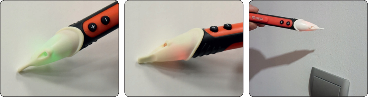 Благодаря гладкой регуляции чувствительности чувствительности тестера Yato YATO YT-28310 Sampler позволяет обнаружить провода под напряжением на расстоянии (также в стенах) , что устраняет прямой контакт с изолированным проводом , увеличивая безопасность использования .