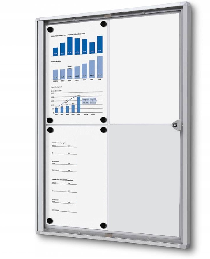 Магнитный информационный дисплей закрыт с анодированными алюминиевыми профилями. Задняя часть подсветки изготовлена из порошкового листа, благодаря которой поверхность магнитная и дает возможность писать с маркерами. Идеальное решение для лестниц , до офисов , Офисы , Школы и т. Д.