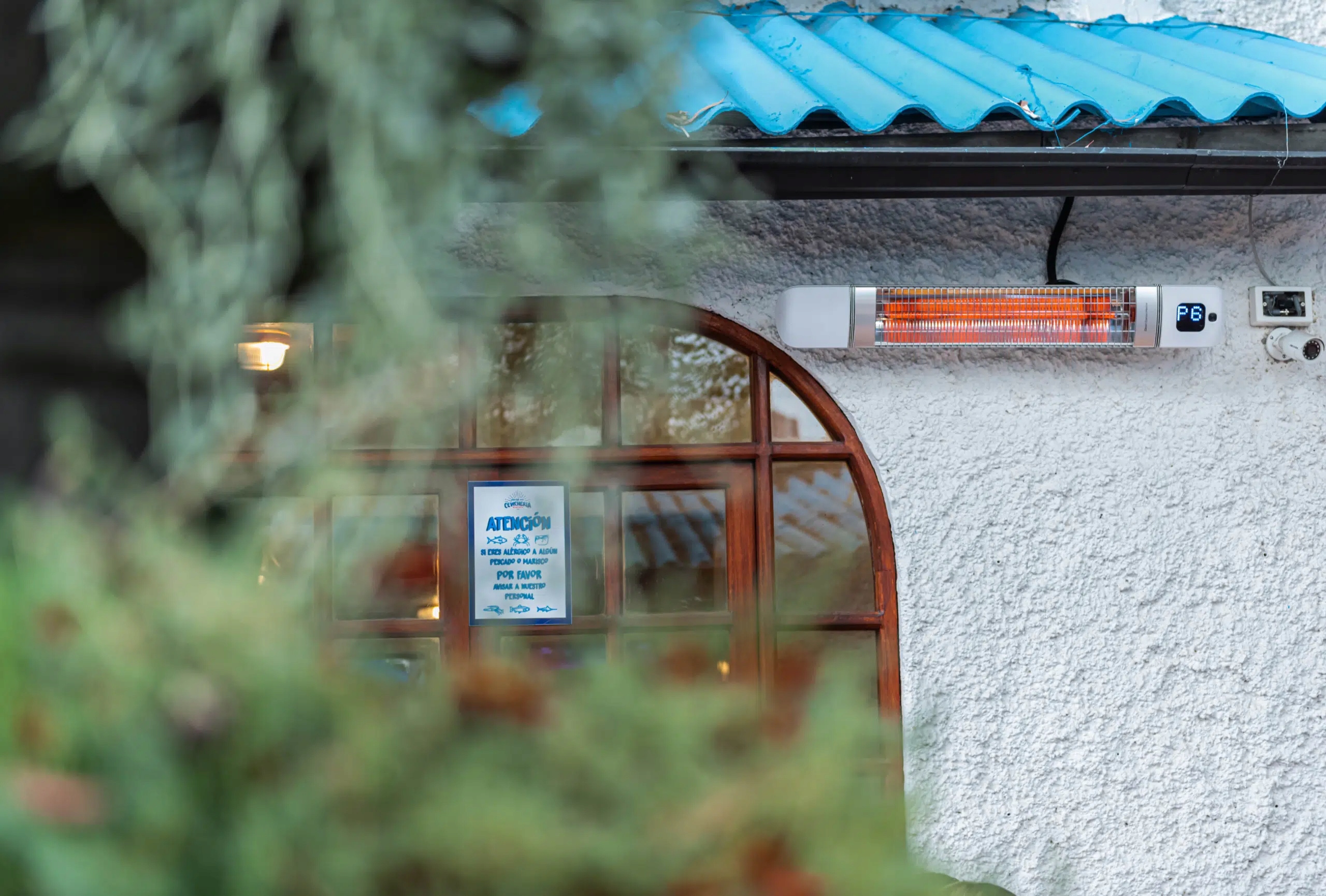 Нагреватель можно безопасно использовать на деревянных поверхностях, таких как террасы. Во время его работы база не нагревается.