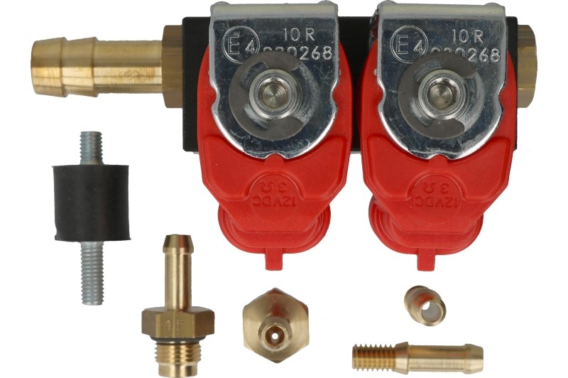 Полоса инжекторов Valtek - 2 цилиндры, сопротивление катушки с двойной формой, гнезда инжектора, газовый вход с внешним диаметром 10,4 миллиметра, один корпус полосы корпуса с герметизацией, двух металлических резиновых подушков для приостановки на две латунные калибрации (18.vlascal. коллектор блокировки Imbus с резьбой M6 с внешним диаметром 5,5 миллиметра.