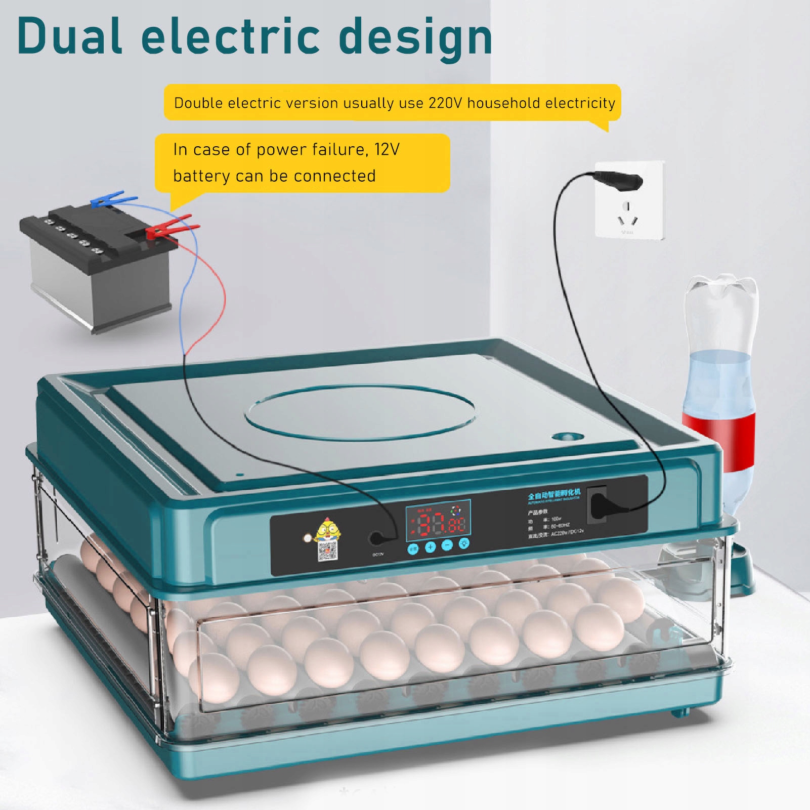 4. Двойное питание: автоматический инкубатор проскальзывает ежедневно источник питания и ручную заполнение питания аккумулятора 12 В после сбоя питания.