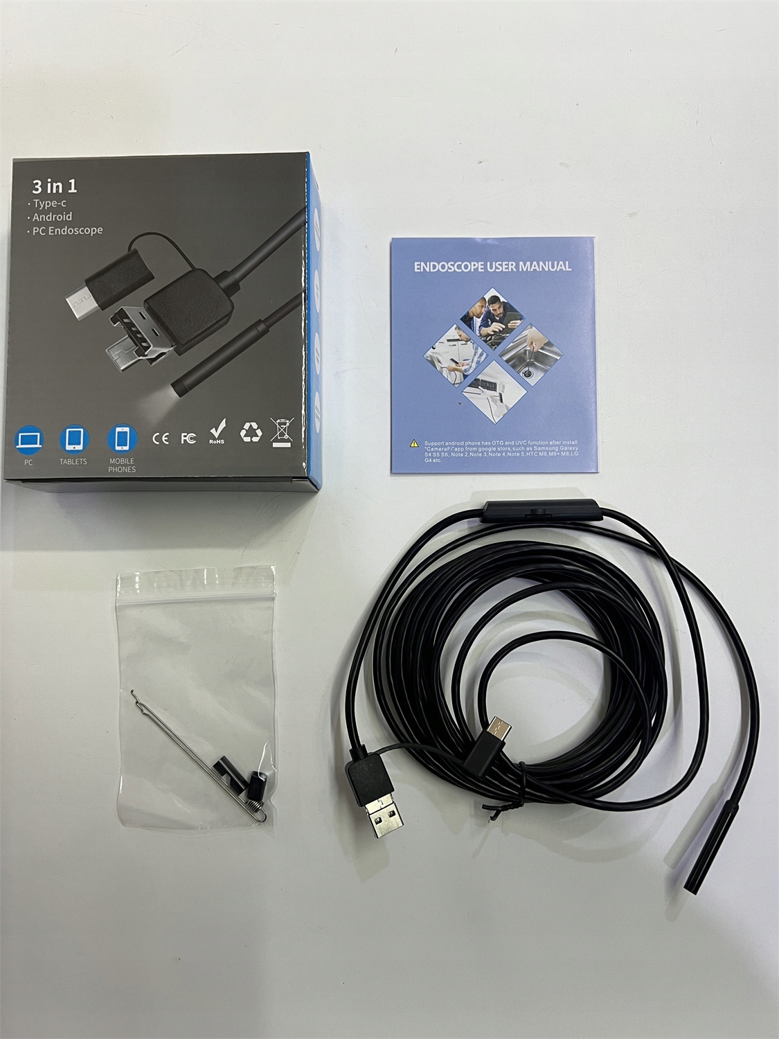 ● Интерфейс 3 в 1: Эта эндоскопическая камера имеет интерфейс USB/Micro USB/Type-C, который обеспечивает высокую совместимость и широкий спектр приложений. Совместим с устройствами с Windows, Mac OS и Android 9.0 и новее. Не поддерживает iPhone, iPad и Windows Phone!