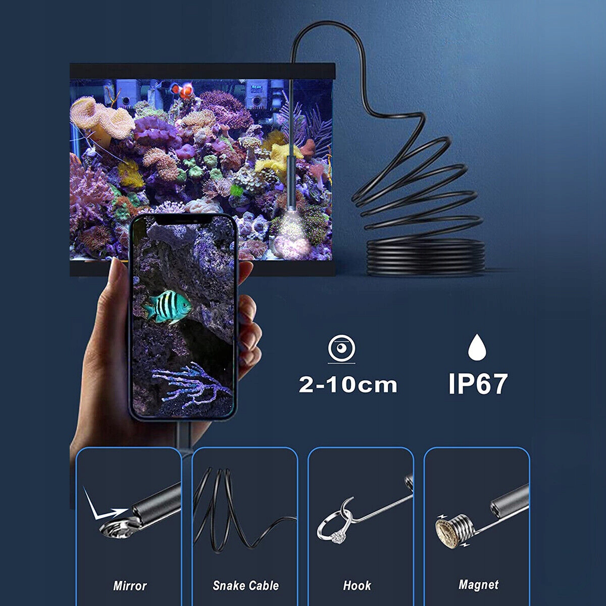 ● HD 480p Инспекционная камера: Эндоскопическая камера с разрешением 640*480p и 5,5 мм объектива помогает в проверке узких пространств, обеспечивая чрезвычайно четкое изображение и способность четко видеть каждую деталь. Оборудован боковым зеркалом, магнитом и крючком, благодаря которого легче удалить мелкие предметы из зазора и проверить состояние боковой стенки дренажной трубки и т. Д.