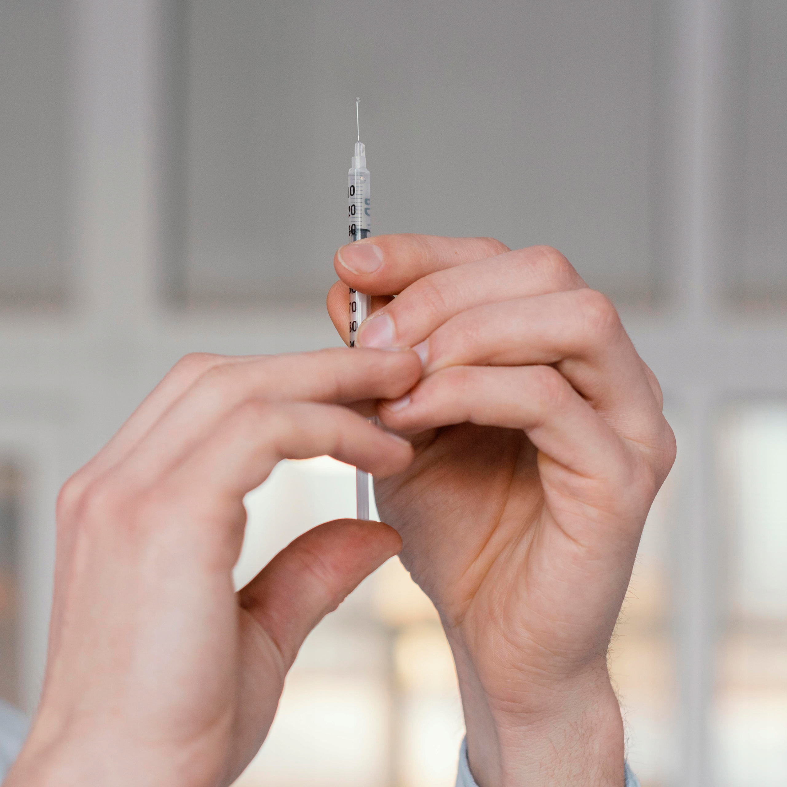 - 1 кусок инсулинового шприца с 1 мл с U100/0,4 x 12 мм игла