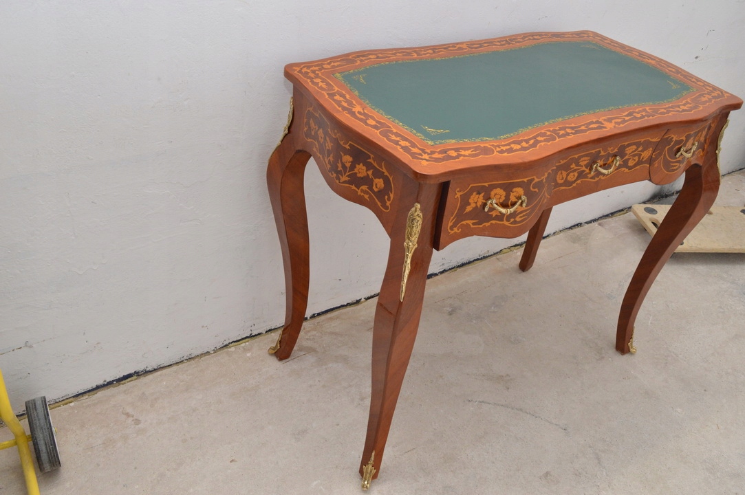 Предмет продажи – невероятно красивый инкрустированный офисный стол в стиле Людвик – с латунной фурнитурой.
