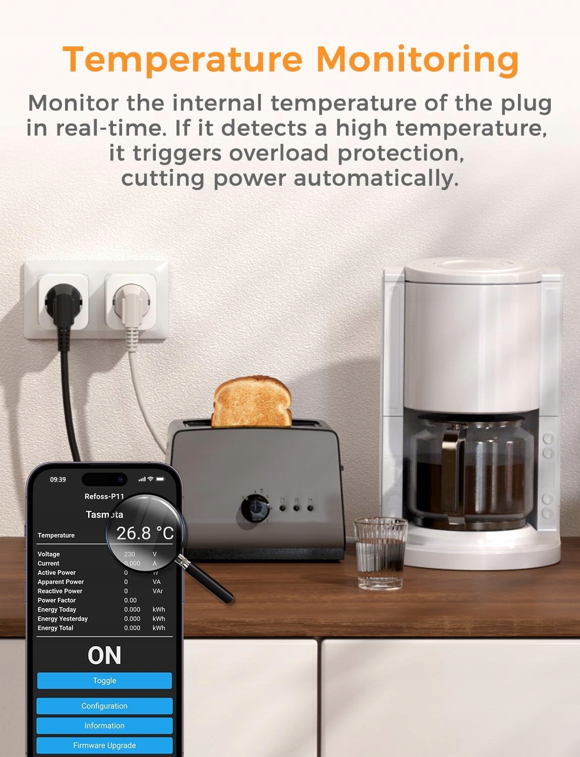 Электрическая розетка Tasmota со счетчиком электроэнергии, розетка Refoss Smart WLAN для измерения потребления электроэнергии, ESP8266 с Google Home Assistant, ioBroker, Alexa, MQTT, Domoticz, OpenHAB, 16 А, 2,4 ГГц