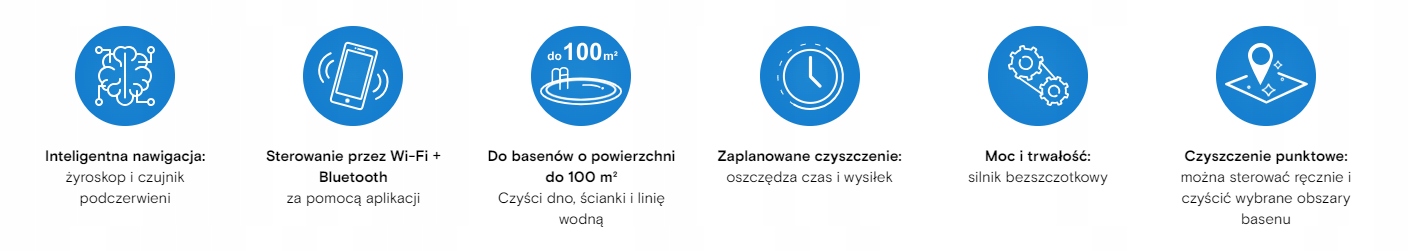 Интеллектуальная навигация с гироскопом и инфракрасным датчиком обеспечивает отличную очистку. Тройной бесщеточный двигатель гарантирует длительную работу. Фильтр 180 мкм тщательно очищает бассейн загрязняющих веществ. Светодиодный индикатор уровня заряда аккумулятора облегчает работу вакуумного чистящего средства.