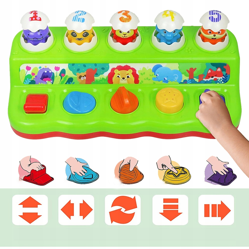 ✅ Укус появляется, когда активируется рычаг, переключатель, ручка или кнопку перед ними. Приятно открыть для себя чувства и раннее развитие. Режим 1: После нажатия кнопки появляются скрытые животные со звуками музыки/животных. Режим 2: Следуйте свету и переместите кнопку, чтобы найти скрытых животных. Легко носить ручку, идеально подходит для игры на свежем воздухе
