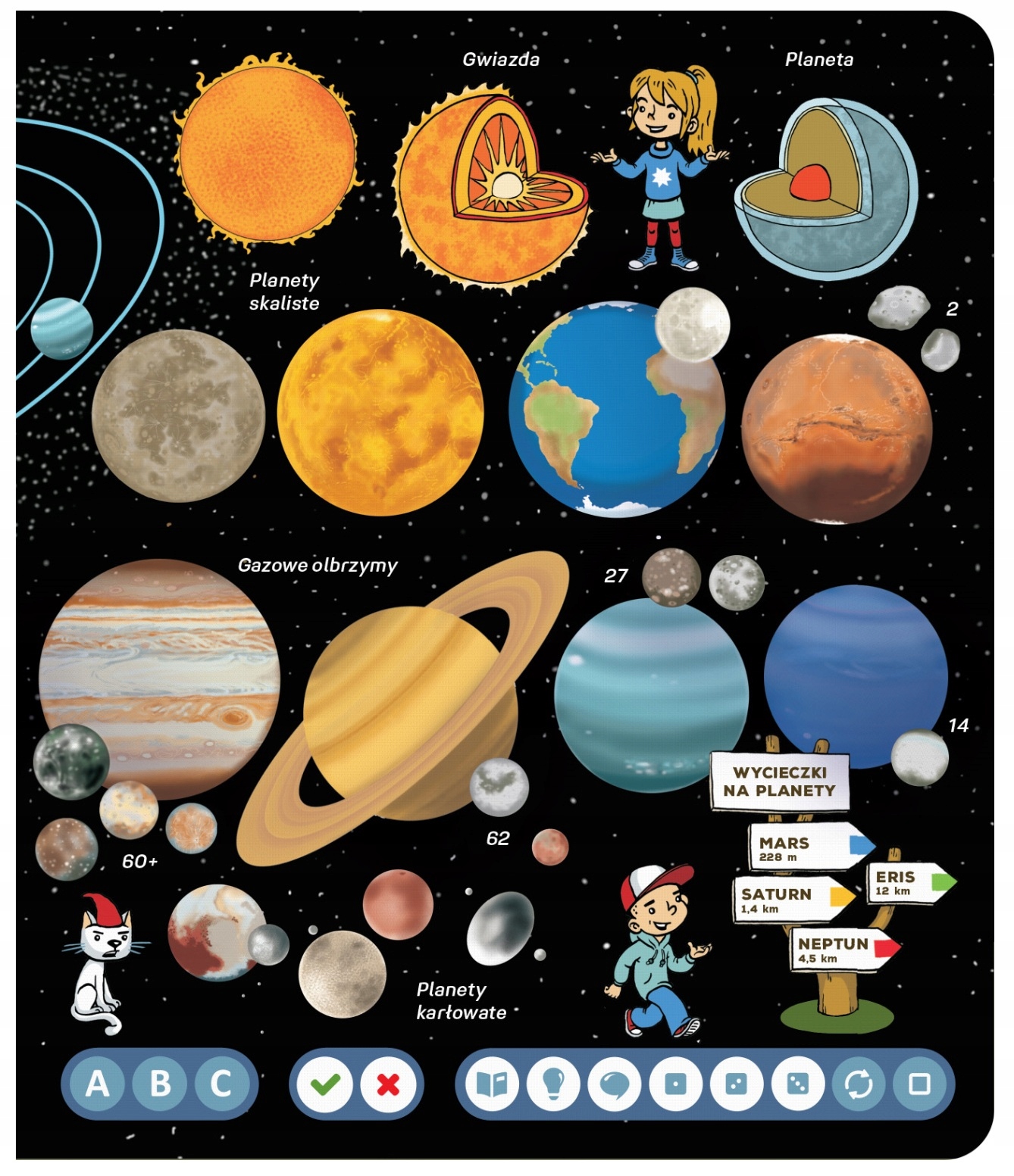 «Вселенная» ответы, среди прочего, такие вопросы, как: Что древние астрономы знали о пространстве? Луна далеко или близко? Книга займет детей в в глубине души в космос, где они изучат все его секреты, космические машины и, например, имя шеста, который совершил космическое путешествие.