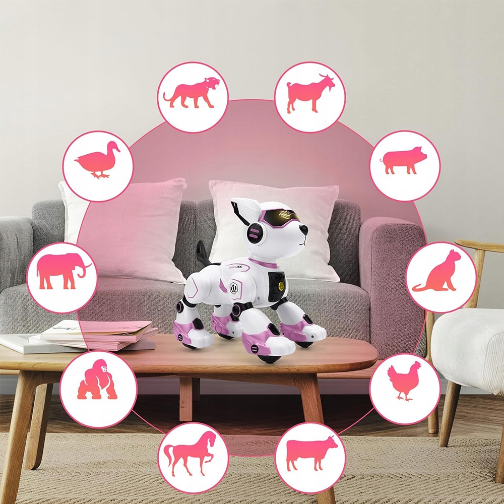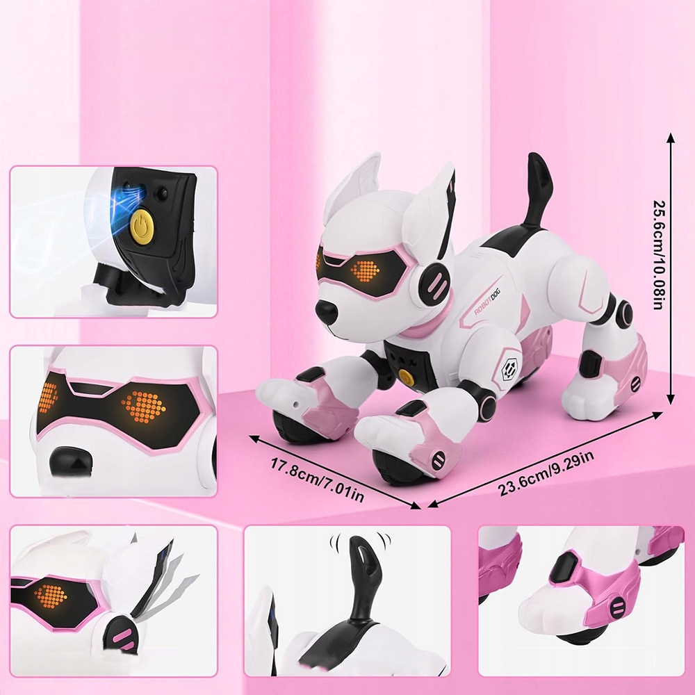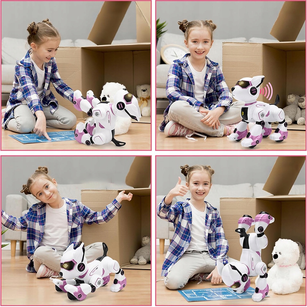 - Dog-Robot имеет интерактивные функции и может общаться с детьми со звуками (только на английском языке) и прикосновения.