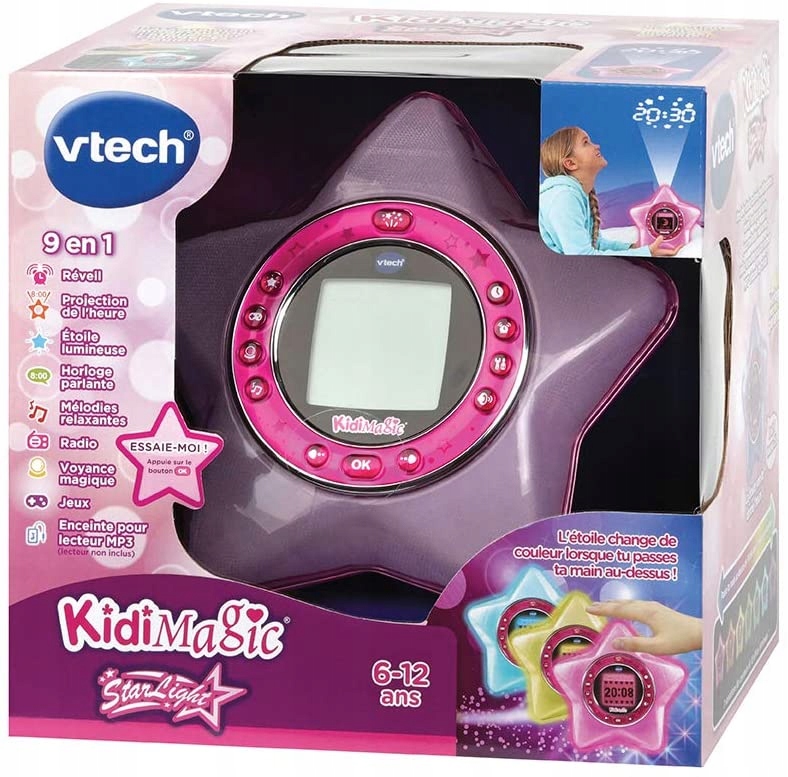 Проведите рукой по звезде, и часы волшебным образом поменяются между 10 предложенными темами и многочисленными световыми эффектами. Детский будильник KidiMagic превращается в динамик и позволяет вашему ребенку слушать свои любимые песни. Кроме того, радиочасы содержат 7 игр, в том числе 4 автомобильные.