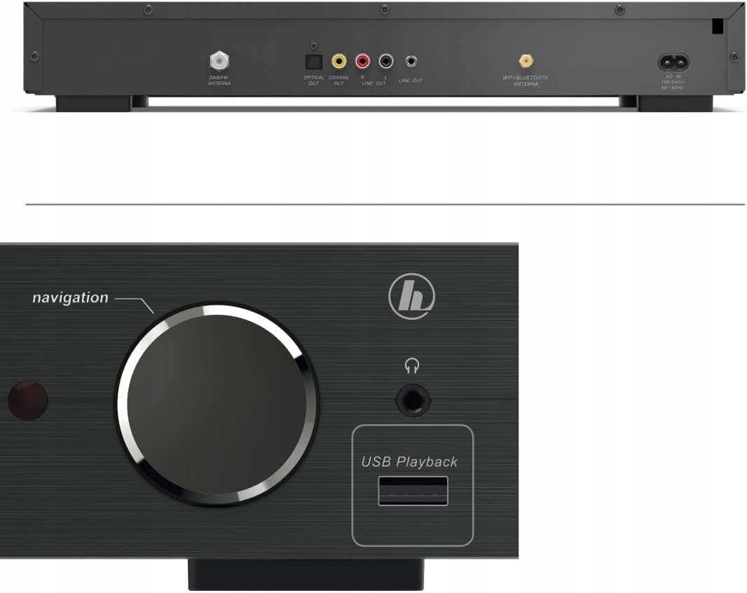 - Усилитель и динамики могут быть подключены к тюнеру с помощью разъема RCA или цифрового ввода с помощью оптического или концентрического кабеля. Кроме того, вы можете подключить тюнер к сети и потоку музыки или отправить его со смартфона или планшета. Недостаточно? USB -розетка позволит вам играть в ваш любимый сборник флэш -накопителя. Вход AUX позволяет подключить MP3 -плеер, смартфон и другие устройства. Почти неограниченный доступ к музыке!
