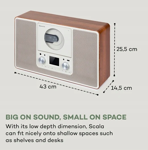 Интернет-радио auna Scala VCD-IR — настоящий феномен формата, сочетающий радость музыки со стильным корпусом и атмосферной фоновой подсветкой.