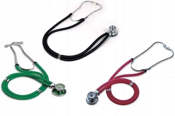 Две мембраны и три воронки разного диаметра позволяют проводить точную аускультацию как новорожденных, так и взрослых. В зависимости от используемой насадки мы будем слышать шумы низкого среднего или высокого диапазона.