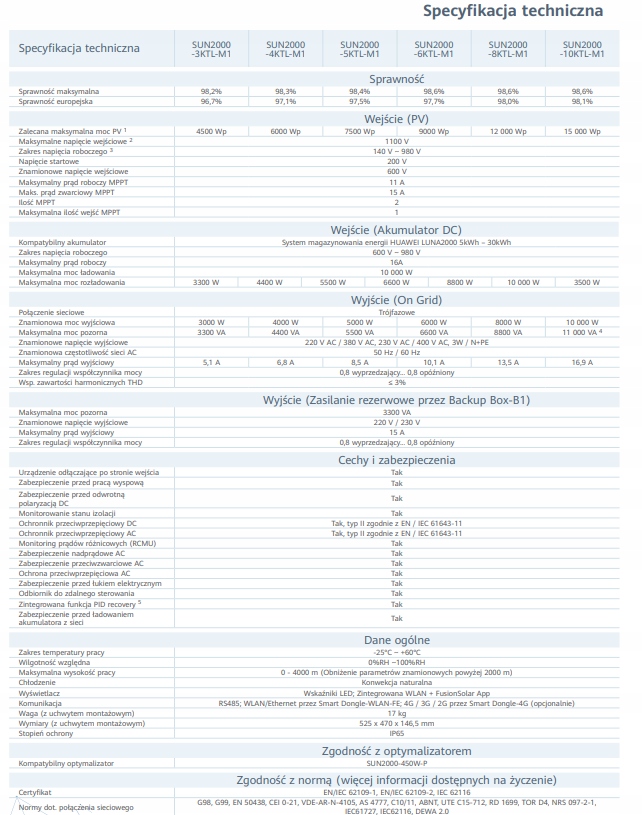 Инвертор серии Huawei SUN2000 предназначен для работы с трехфазной сетью. Максимальный КПД устройства Huawei составляет целых 98,6%! Дополнительным преимуществом является возможность сотрудничества с системами накопления энергии LUNA2000 в диапазоне5 - 30 кВтч.