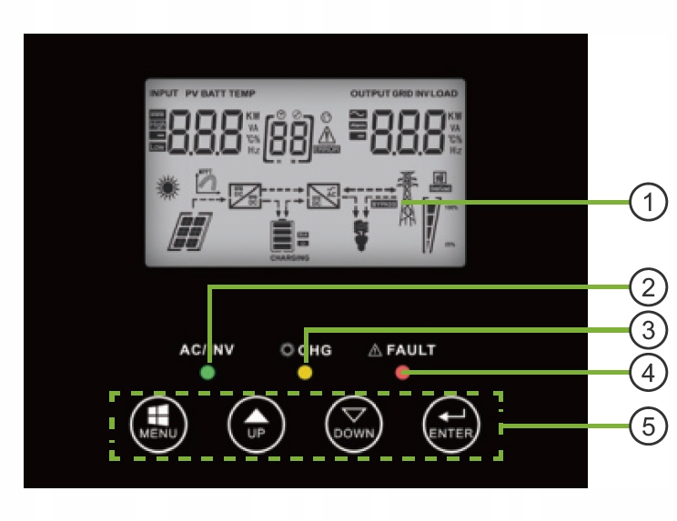 - Настраиваемый приоритет зарядки от сети переменного тока или солнечной энергии, благодаря настройкам ЖК-дисплея.