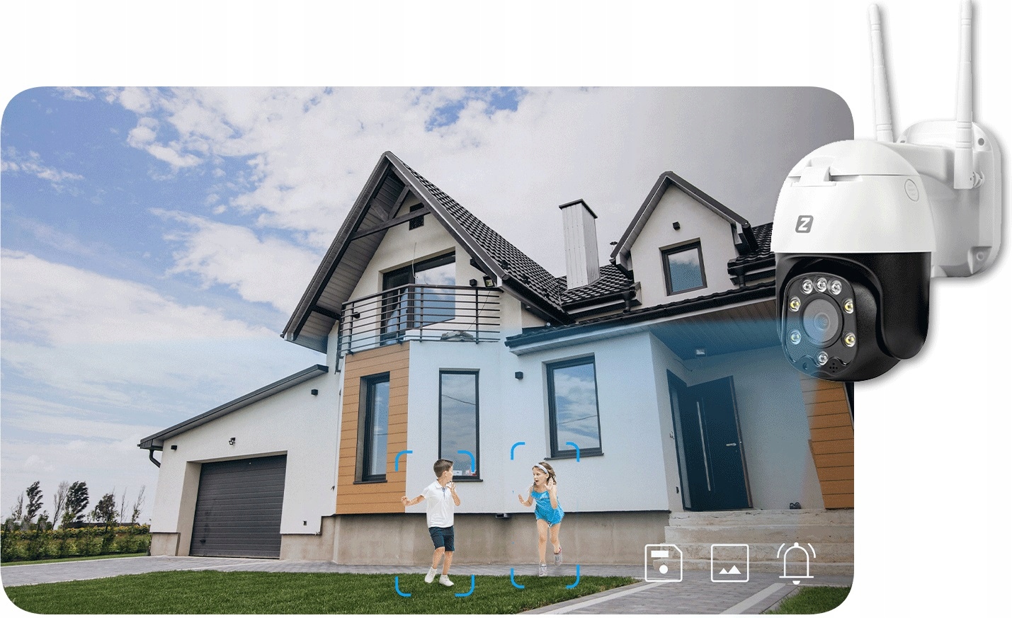 Благодаря встроенному алгоритму камера распознает силуэты людей и автоматически следует за обнаруженной фигурой в пределах контролируемой зоны.
