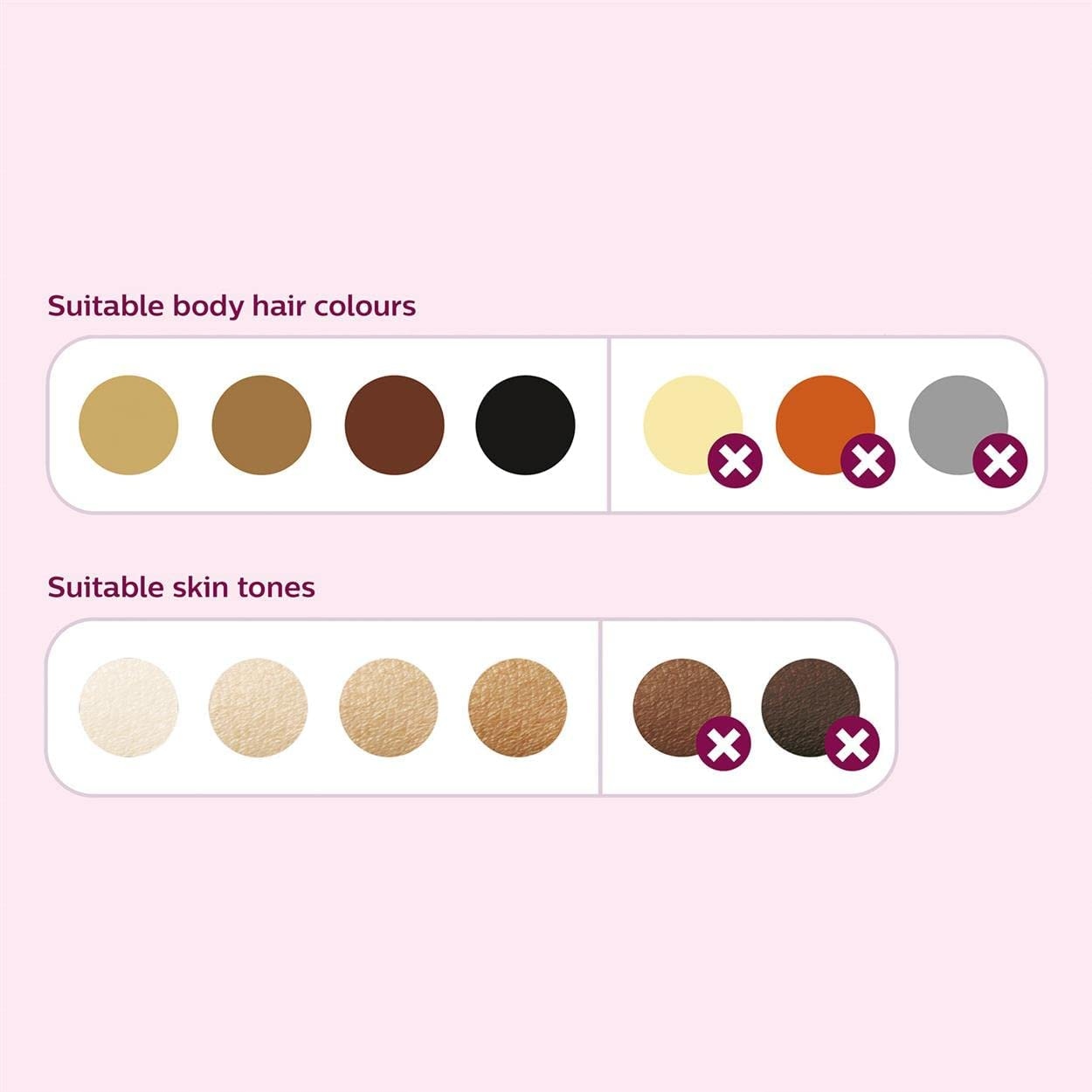 Устройство Philips Lumea нельзя использовать на светлых, седых, светлых или рыжих волосах, а также на очень темной коже. Это связано с необходимостью сохранения высокого контраста между пигментами волос и кожи.