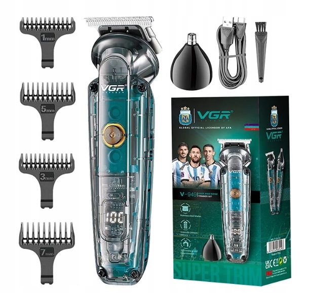 Особенности продукта: Лезвия из нержавеющей стали: точность в течение многих лет. Лезвия, изготовленные из самого высокого качества из нержавеющей стали, неизменно острые и точные черенки. Вам не нужно беспокоиться о припытных лезвиях-машина VGR VG-949 будет вам долго служить. IPX6 Водонепроницаемый: простота очистки. Благодаря водонепроницаемости IPX6, вы можете безопасно вымыть машину под проточной водой. Поддерживать его в чистоте теперь очень просто и, следовательно, более гигиенично. Цифровой дисплей светодиодный батарея: всегда под контролем. Вам не нужно беспокоиться о неожиданных перерывах во время стрижки. Светодиодный дисплей покажет вам, сколько энергии остается в батарее, что позволит вам планировать следующее использование. Большая батарея -мощность 1200 мАч: больше времени для стиля. Благодаря емкому батарее, вы можете насладиться более длительным рабочим временем по одной зарядке. Вам не нужно останавливать стрижку пополам, даже если у вас пышные волосы. Что вы получаете: все, что вам нужно. В наборе вы найдете все, что необходимо для идеального стиля: машина, насадки различной длины, триммер из носа, чистящая щетка и USB -кабель.