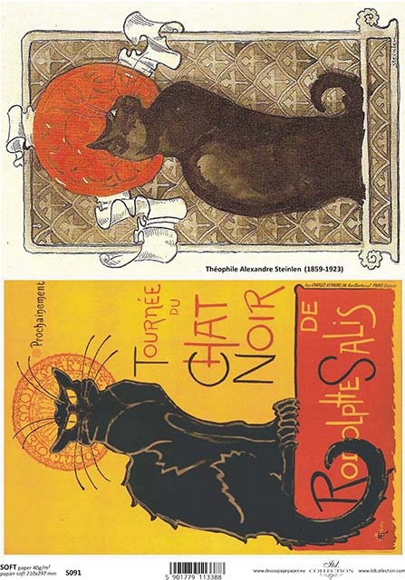 ITD Collection - Папір для декупажу SOFT S091 - кіт CHAT NOIR - A4