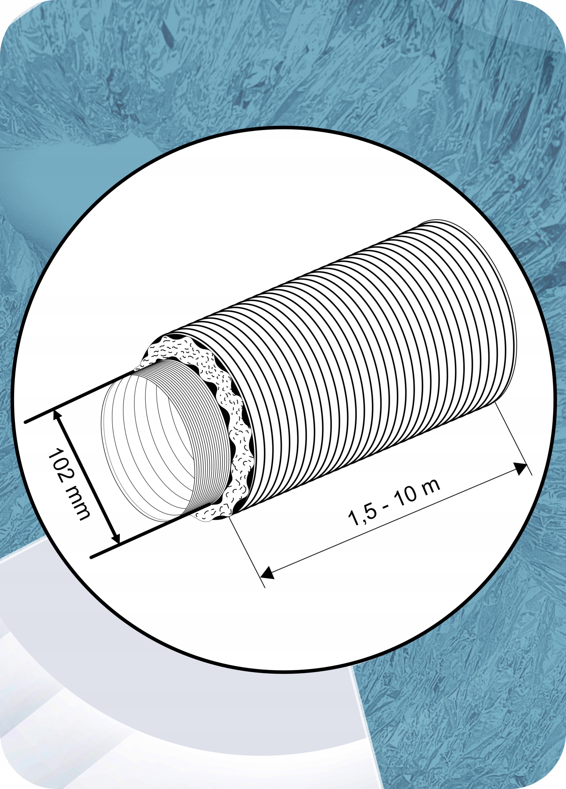 Вентиляционный канал ИЗОЛИРОВАННЫЙ диаметром 100 мм - 10 м, гигиенический