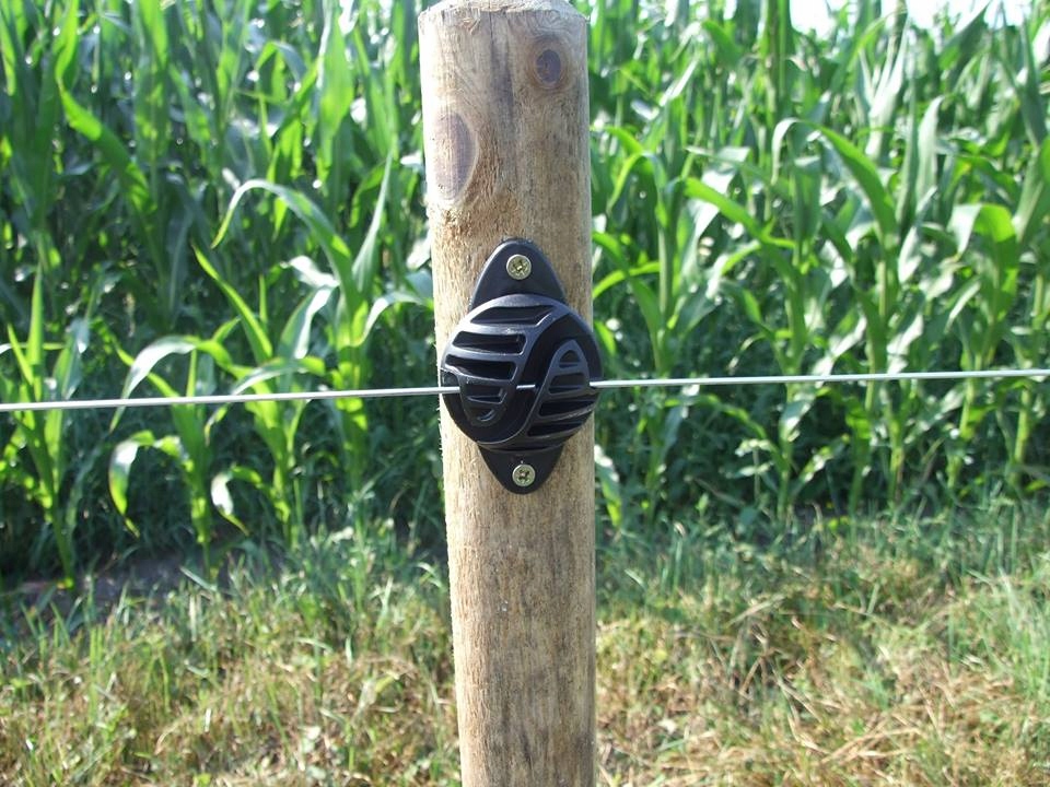 Изолятор нового поколения, уникальная круглая форма придает ему современный вид и исключает проколы. Рекомендуется в первую очередь для постоянных заборов, поскольку благодаря своей конструкции позволяет легко заменять провода без необходимости их демонтажа. Крепится 2 шурупами по дереву. Его также можно закрепить проволокой в тех местах, где можно использовать винты. Рекомендуется для проволоки и оплетки.