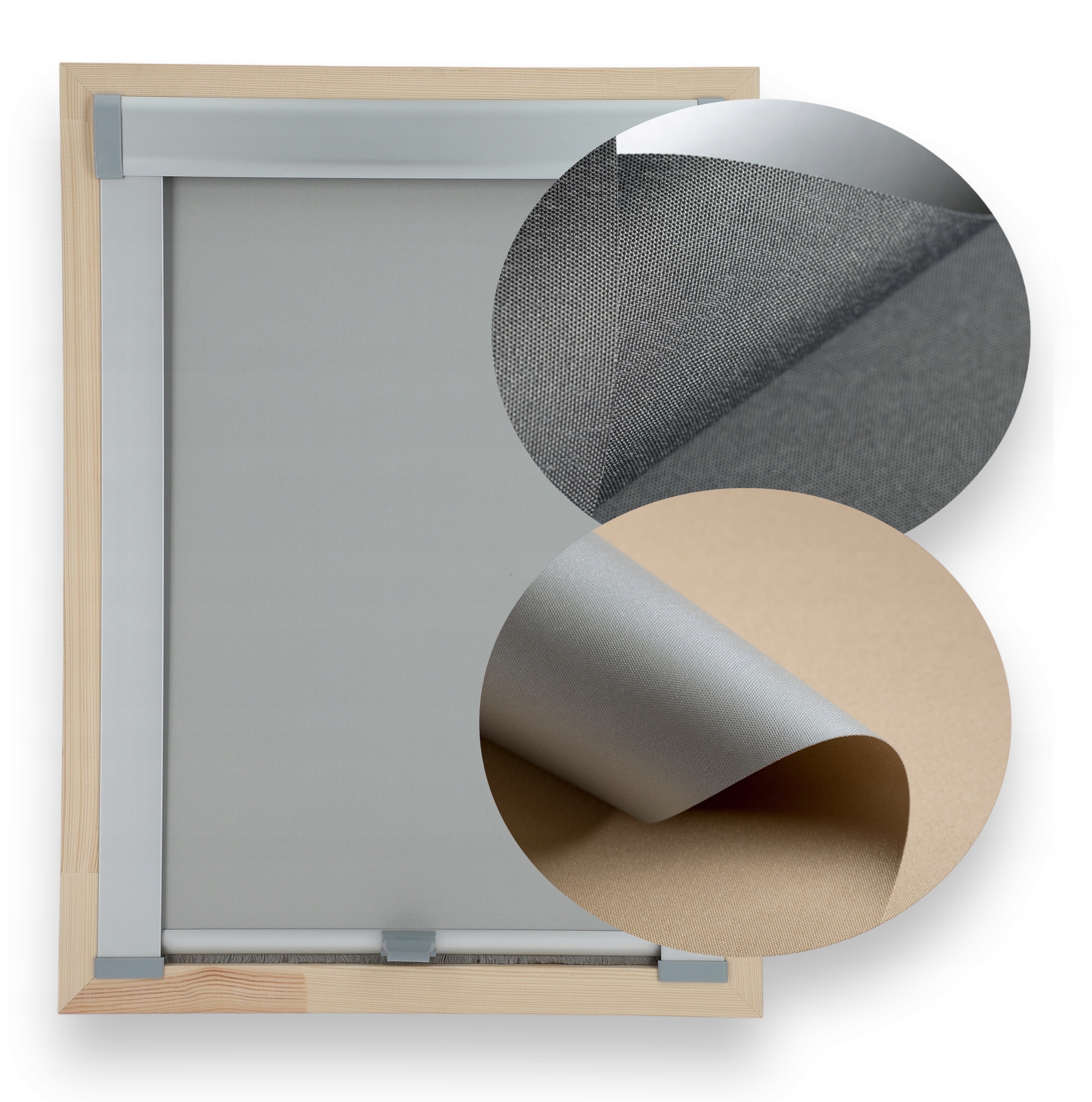 Роллеты имеют ткань выбранного цвета из палитры ниже. 100% ткань блэкаут с прорезиненным материалом и серебристым покрытием, отражающимсолнечные лучи. Он выделяется своим качеством и долговечностью. Обеспечивает полное затемнение, защиту от света и тепла, добавляя эстетичности интерьеру. При очень высоких температурах чрезмерное количество солнечных лучей может привести к выталкиванию ткани из направляющих, что является естественным явлением в случае мансардных окон. Ткань подвергается сильному солнечному излучению, из-за чего в солнечные дни ткань может выпасть из направляющих.
