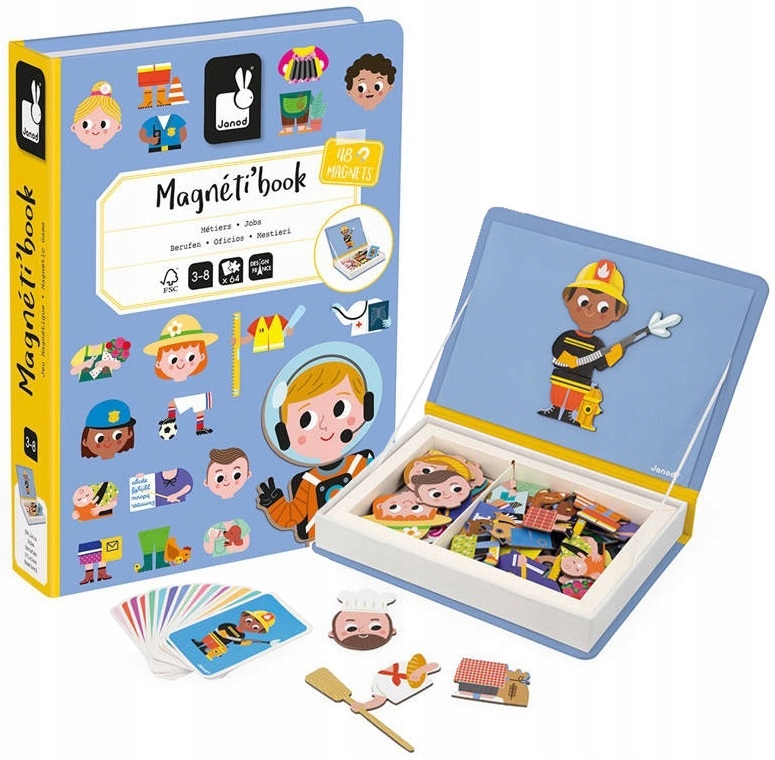 Установленные соревнования из лучшей линии магнитибук содержит 64 красочных магнита с частями тела (головы, туловище, ноги), элементы служебных костюмов и характерные детали (например, шпад, гидрант), необходимых для создания представителей различных профессий, в том числе Baker, Policewomen, Postman, Footbaler, Astronaut, Babyststertsteststers. магниты также позволяют вам организовать совершенно новые изобретенные символы. Два отсека внутри помогают сохранить порядок в магнитах и картах. все выглядит очень эстетически и идеально подходит для подарка.