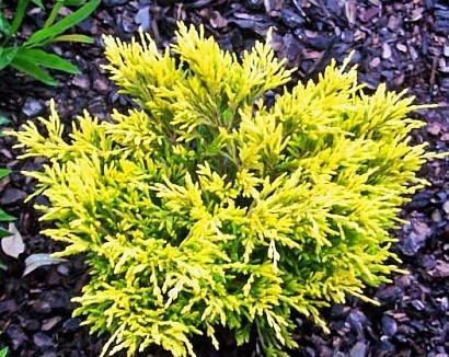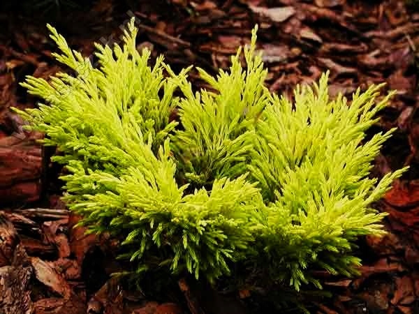 Это довольно медленно растут, низкий кустарник, достигающий высотой до 0,4 м, диаметром 1 м. Его иглы длинные, мягкие, не -носимые, золотисто -желтые и зимние желтые.