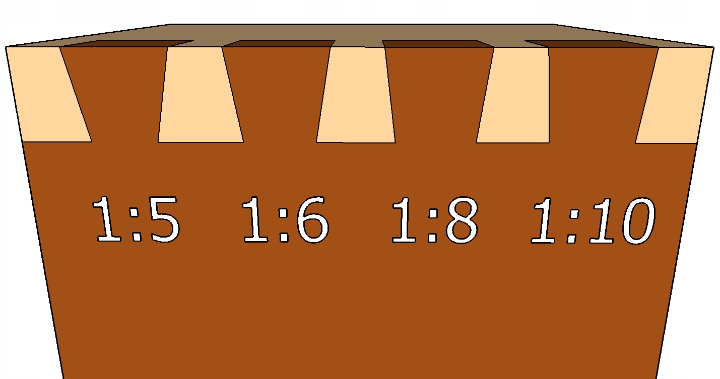 Предполагается, что хвосты с соотношением сторон 1: 5 и 1: 6 используются для мягкой древесины, а большие 1: 8 и 1:10 для твердой дерева. Тем не менее, мы рекомендуем руководствоваться нашим собственным вкусом и чувством эстетики.