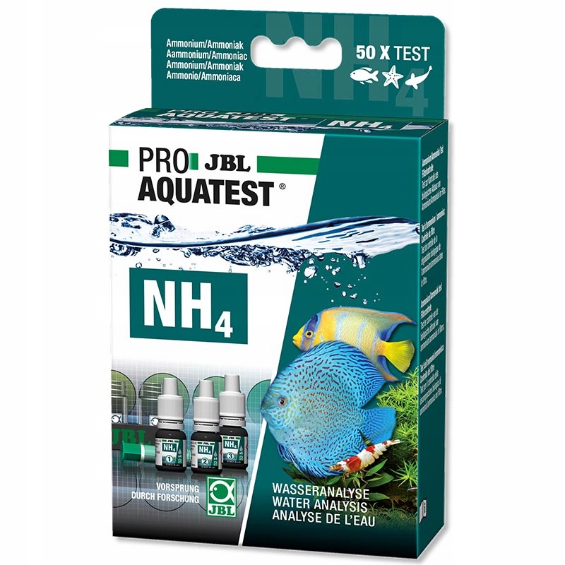 Amonie Test-test-let-set NH4 используется для обычного контроля содержания аммония / аммиака в сладкой и морской аквариумной воде в 0,25-6 мг / л (ч / млн). Подготовка может быть полностью успешно использован в слегка окрашенной аквариумной воде, которая возникает во время фильтрации торфа или лечения пациентов с пациентами. Специфические бактерии ответственны за процесс разложения всех органических веществ (остатки растений и остатки пищи, помет рыбы). Многие целительные агенты, предназначенные для лечения заболеваний рыб, могут оказать разрушительное влияние на очистку бактерий и в то же время влияют на увеличение содержания аммония. В нормальном случае, в хорошо -кеплевом аквариуме, содержащем биологический фильтр, содержание аммония не может быть указано. Амон является важным питанием для растений и обычно безвредно для рыбы. В зависимости от значения pH аммиак может возникнуть из -за иона аммония (NH4+), который является ядом для рыбы (NH3). Следовательно, в дополнение к непрерывному измерению содержания аммония, значение pH также должно быть выполнено.