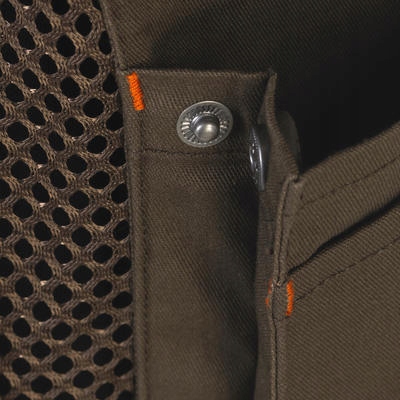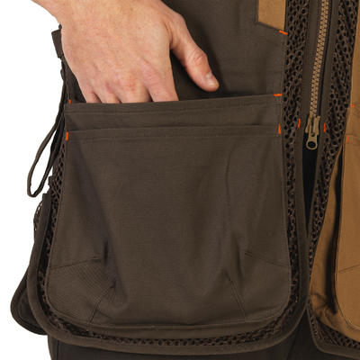 4 усиленных передних кармана-книжки на кнопках (1 карман вмещает 25 пуль). Универсальный нагрудный карман на молнии. Задний охотничий карман.