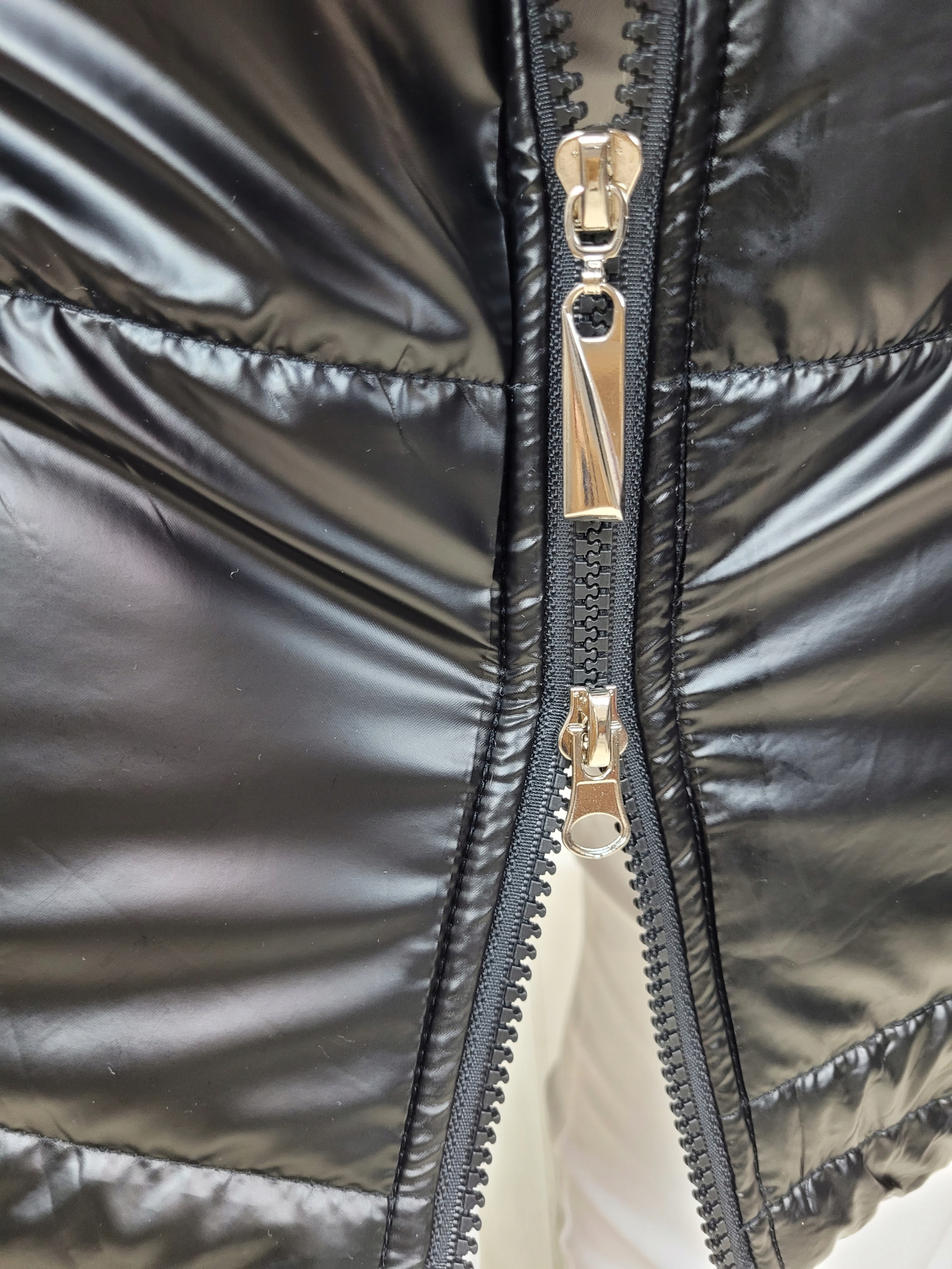 Женский стеганый жилет с капюшоном. Жилет и карманы на молнии. Просторный капюшон защитит от ветра. Жилет имеет двустороннюю молнию, водонепроницаемая ткань, из которой он изготовлен, обеспечивает комфорт ношения даже в неустойчивую погоду.