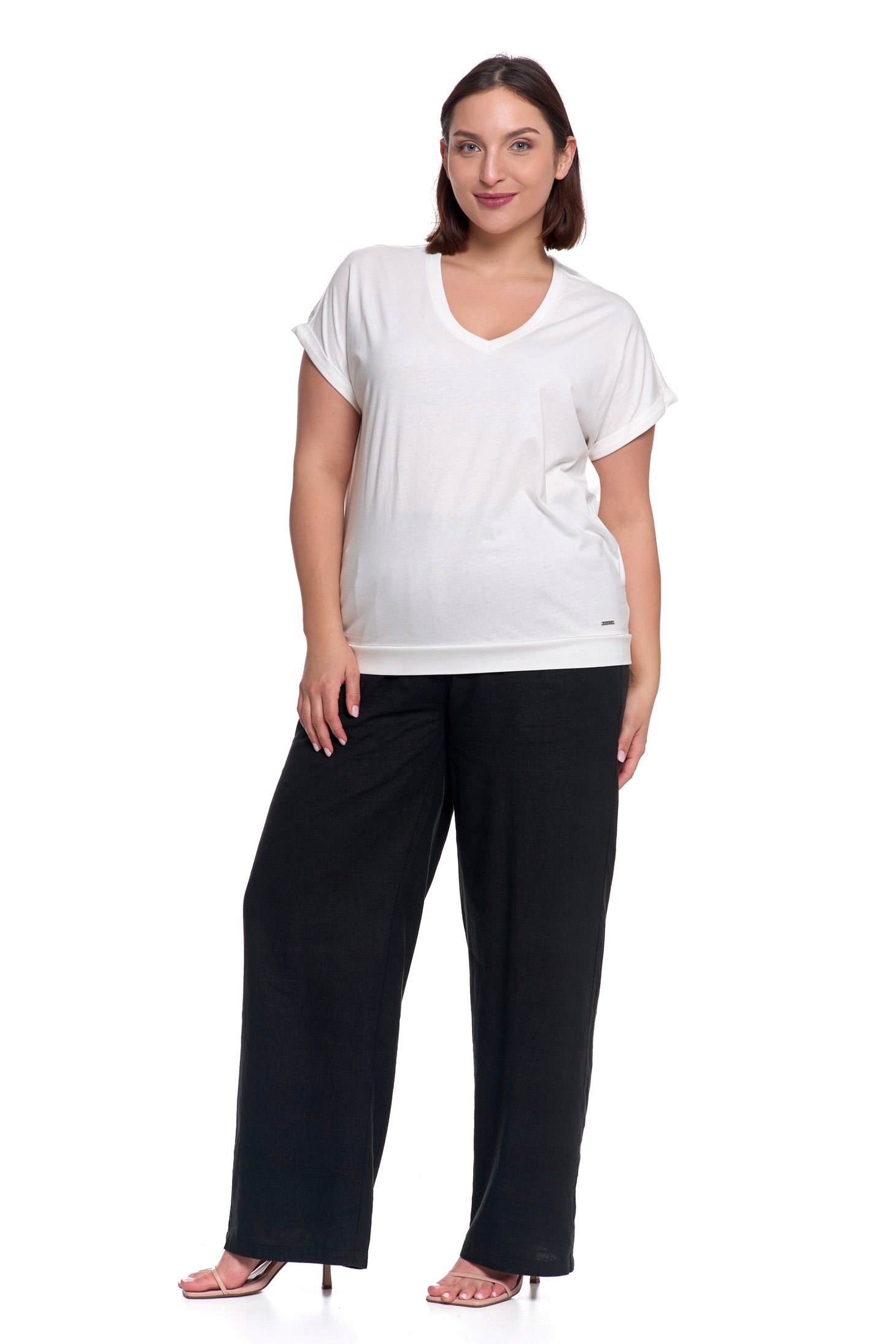 Эта белая блузка является сущностью минимализма и класса, идеально подходящей для женщин, которые ценят комфорт и стиль. Ее свободный порез тонко завершает фигуру, обеспечивая свободу движения, а вырез в сыре придает ему нежную женственность. Свернутые рукава добавляют легкость и случайный характер, что делает эту модель идеальной как для повседневной, так и для более элегантной стилизации.