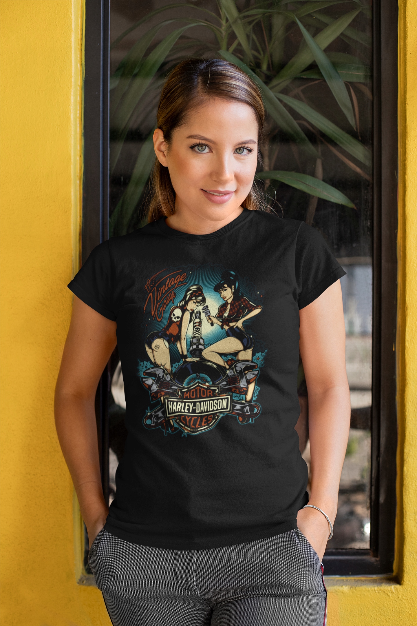 ЖЕНСКАЯ ФУТБОЛКА С МОТОЦИКЛОМ HARLEY DAVIDSON