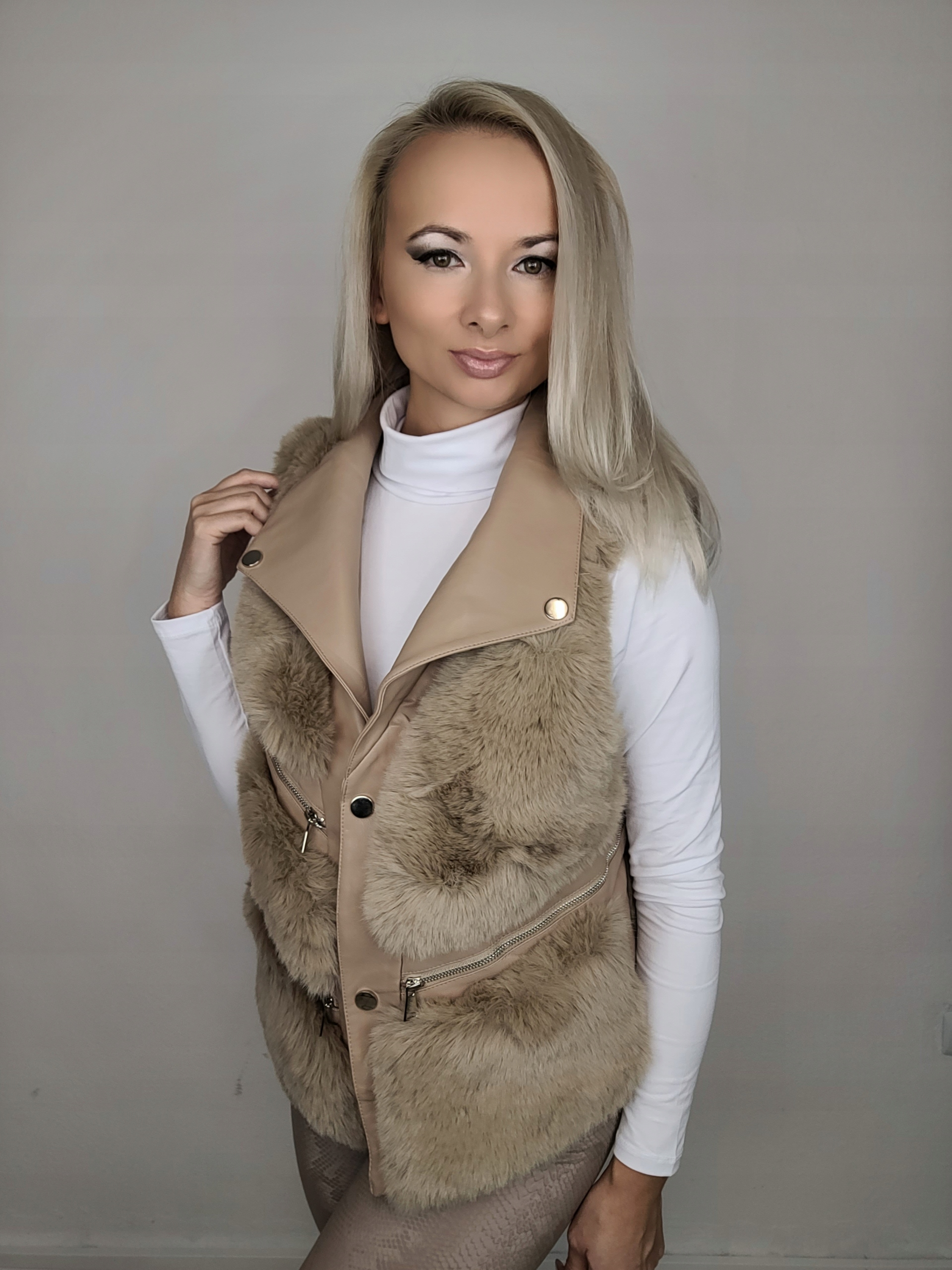 Женская безрукавка из мягкого теплого искусственного меха в сочетании с экокожей. Застегивается на кнопки, внутренняя часть отделана подкладкой в цвет меха. Женский жилет на меху – идеальное решение для элегантного стиля и дополнение повседневного повседневного стиля.