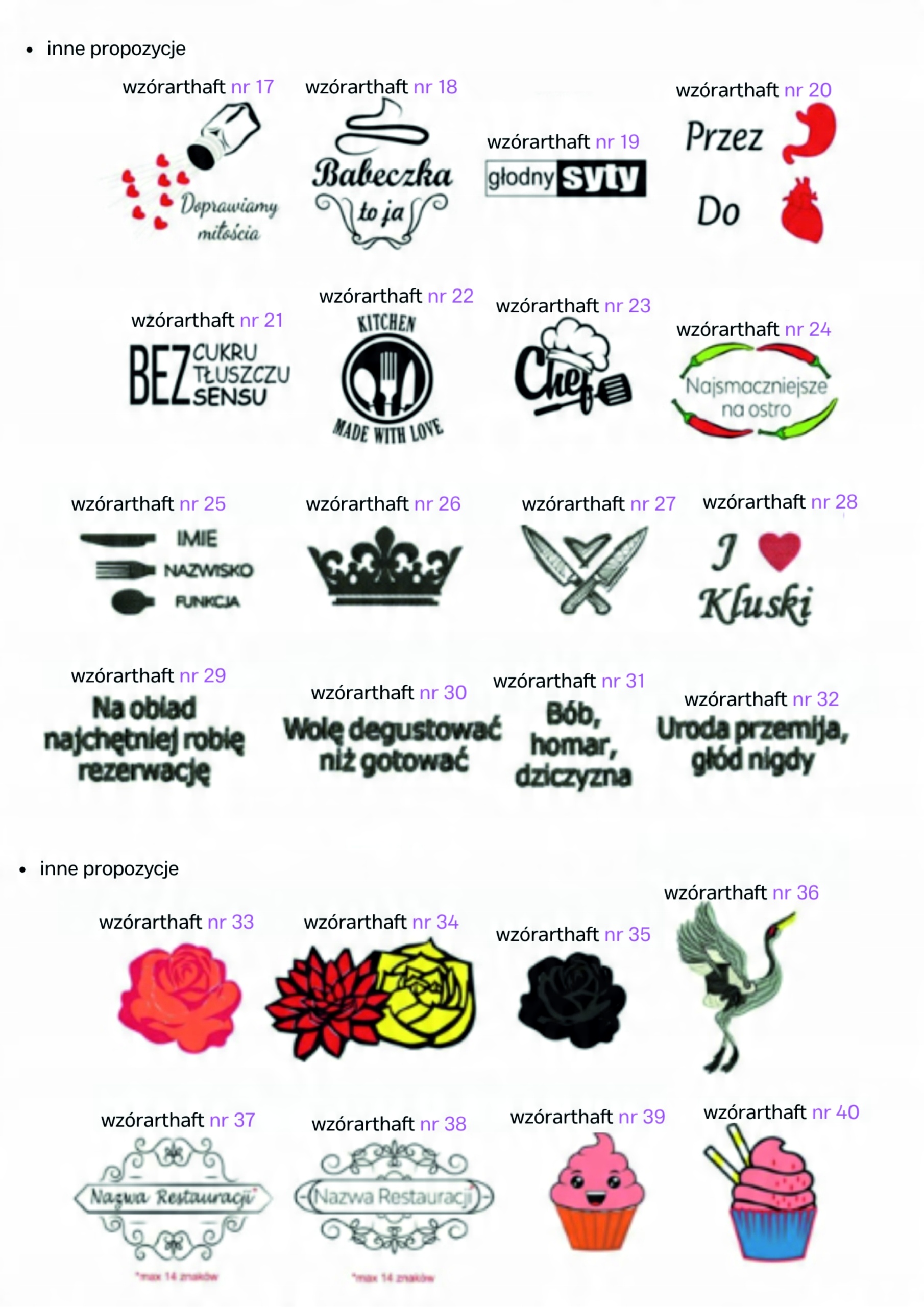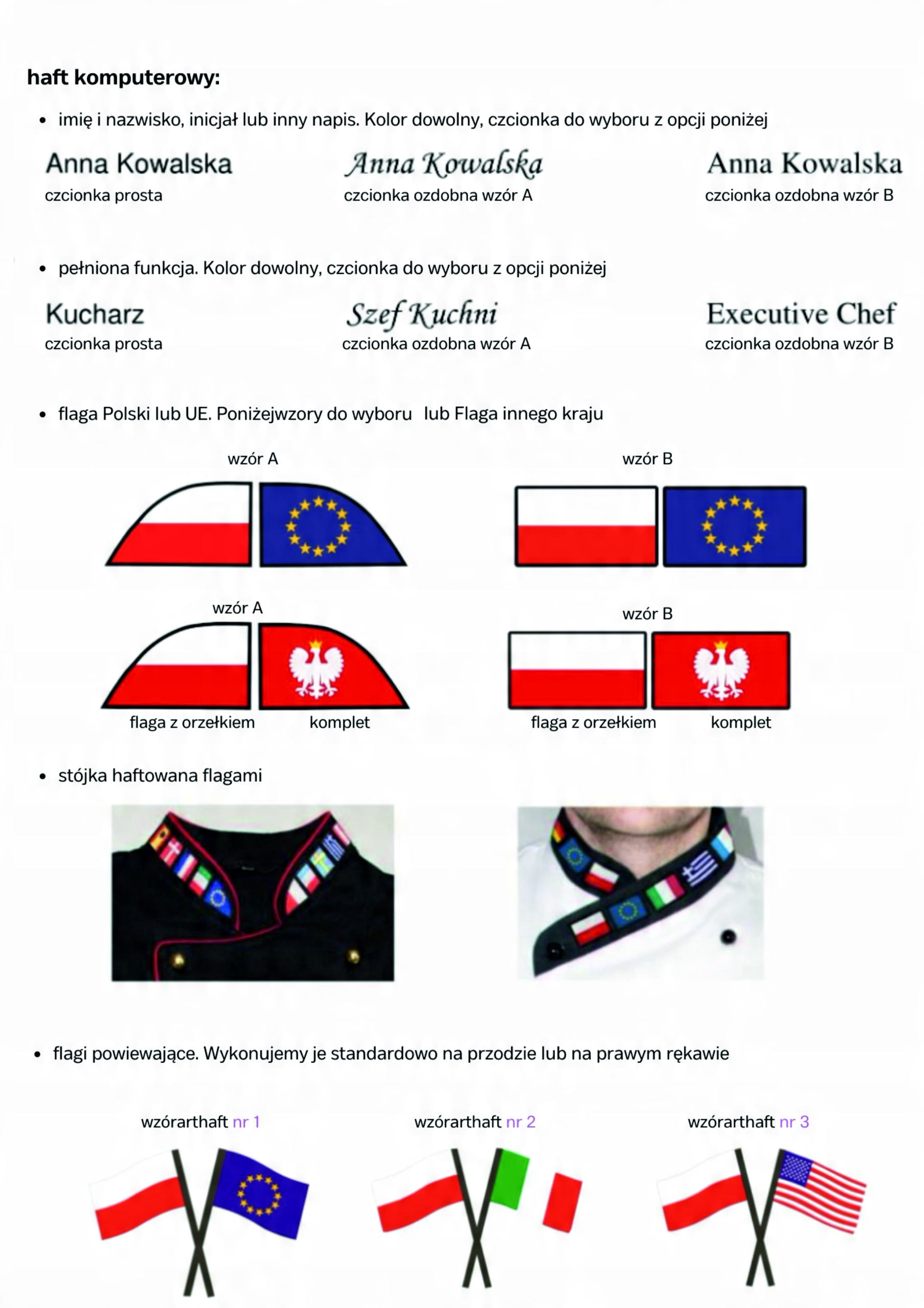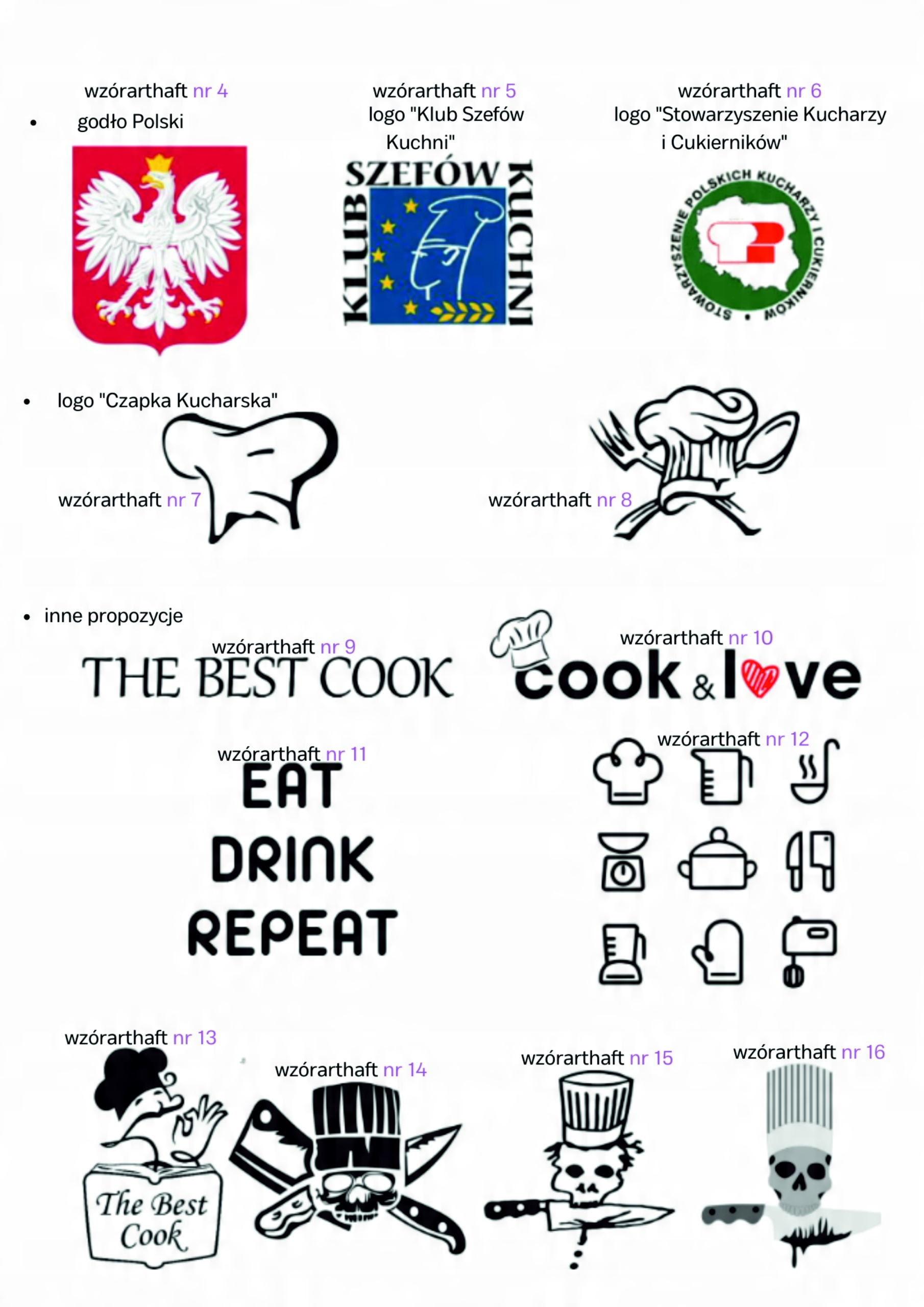 - вышивка логотипа «Ассоциации польских поваров и кондитеров»; li>