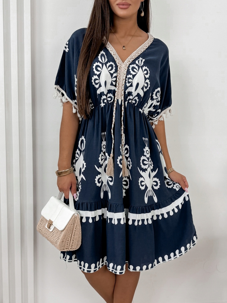 ЖІНОЧА ЛІТНЯ СУКНЯ МІДІ, СТИЛЬНЕ БОХО, Рюші, ЛІТНІ КОЛЬОРИ