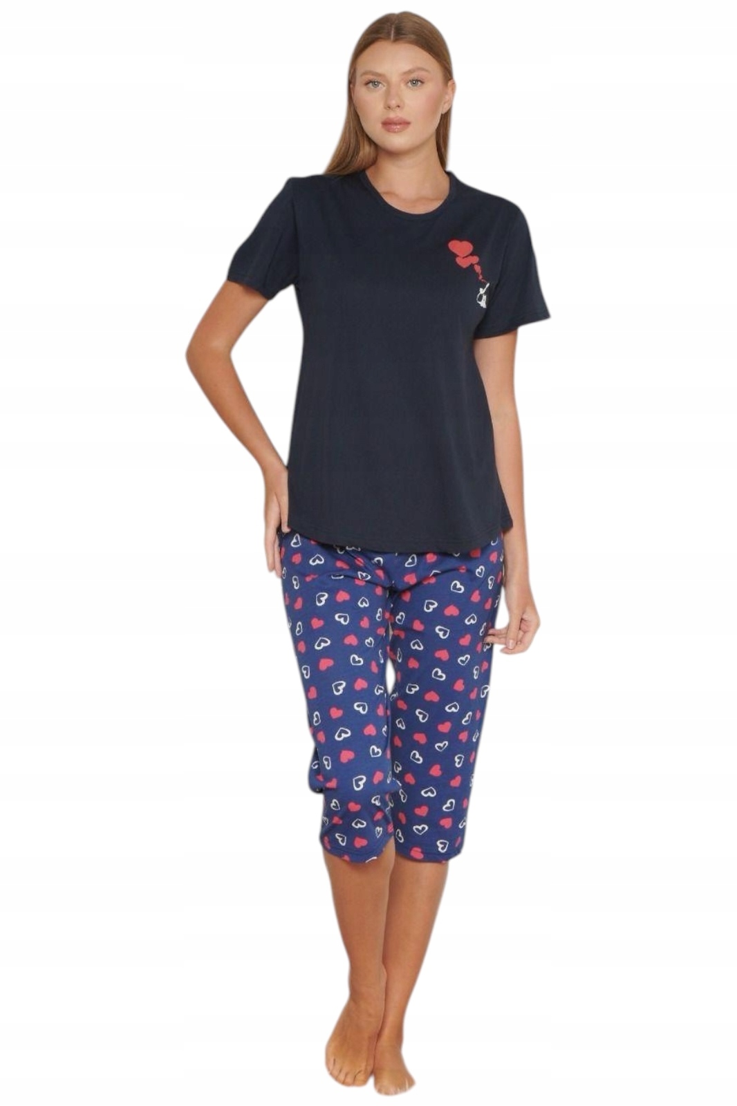 Хлопковая женская пижама с короткими рукавами и брюками 3/4