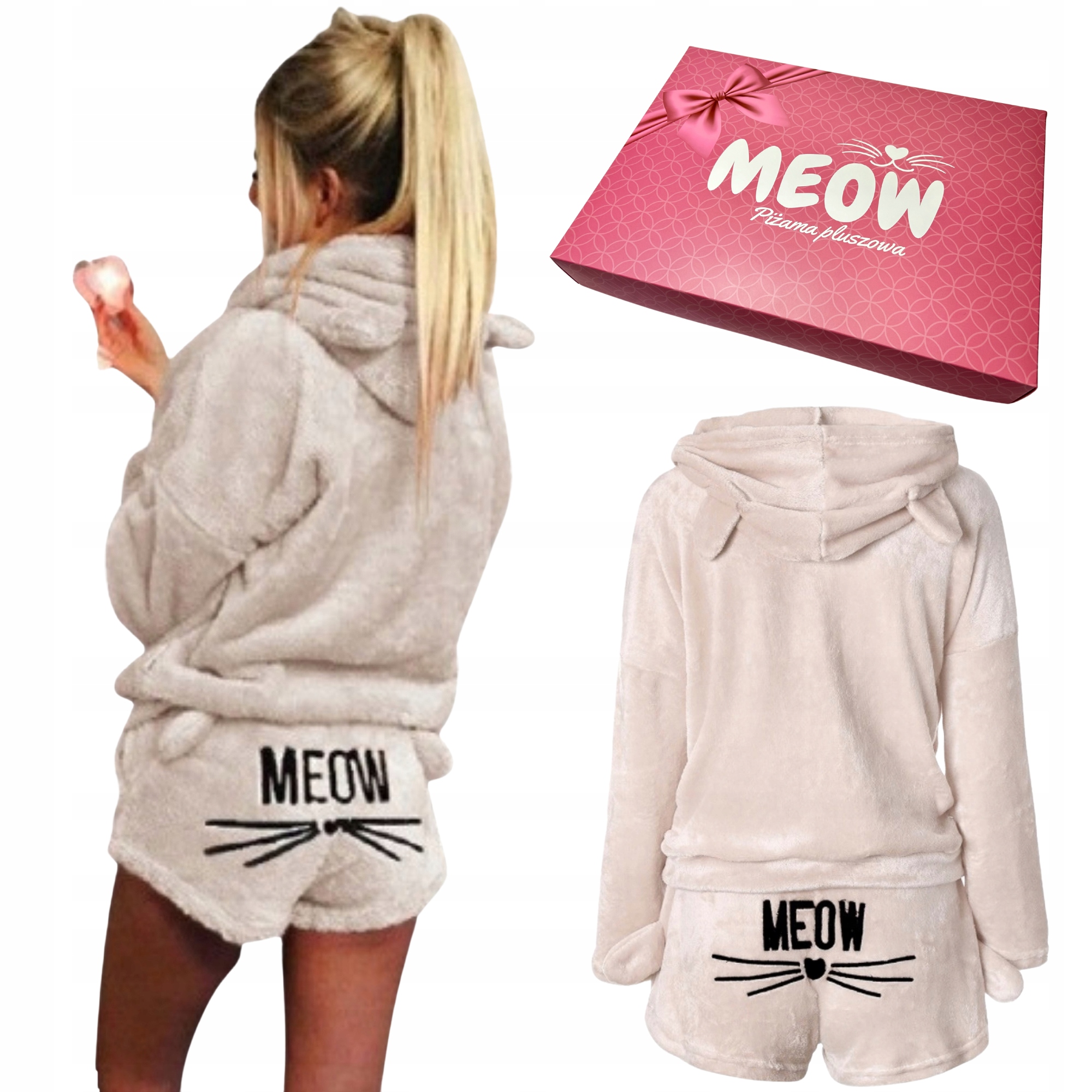 Удобный, пушистый комплект, состоящий из толстовки и шорт бежевого размера M б>. Пижама изготовлена из приятного на ощупь материала, который обнимет и согреет не только ночью, но и после ванны или в качестве домашней одежды. Пижама с милым кошачьим мотивом подарит вам незабываемые минуты релакса и тепла! Еще одним неоспоримым преимуществом нашей пижамы является ее удобство в ношении. Она не сковывает движений, поэтому вы будете чувствовать себя в ней чрезвычайно комфортно. Упаковано в красивую коробку, его можно подарить близкому человеку!