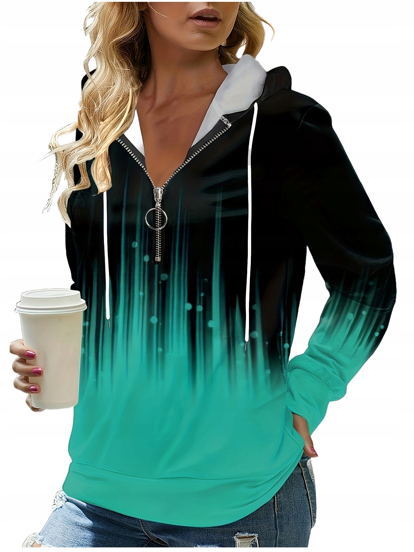ТЕПЛЫЙ ЖЕНСКИЙ СВИТШОТ С КАПЮШОНОМ, ГРАДИЕНТНЫЙ ПРИНТ