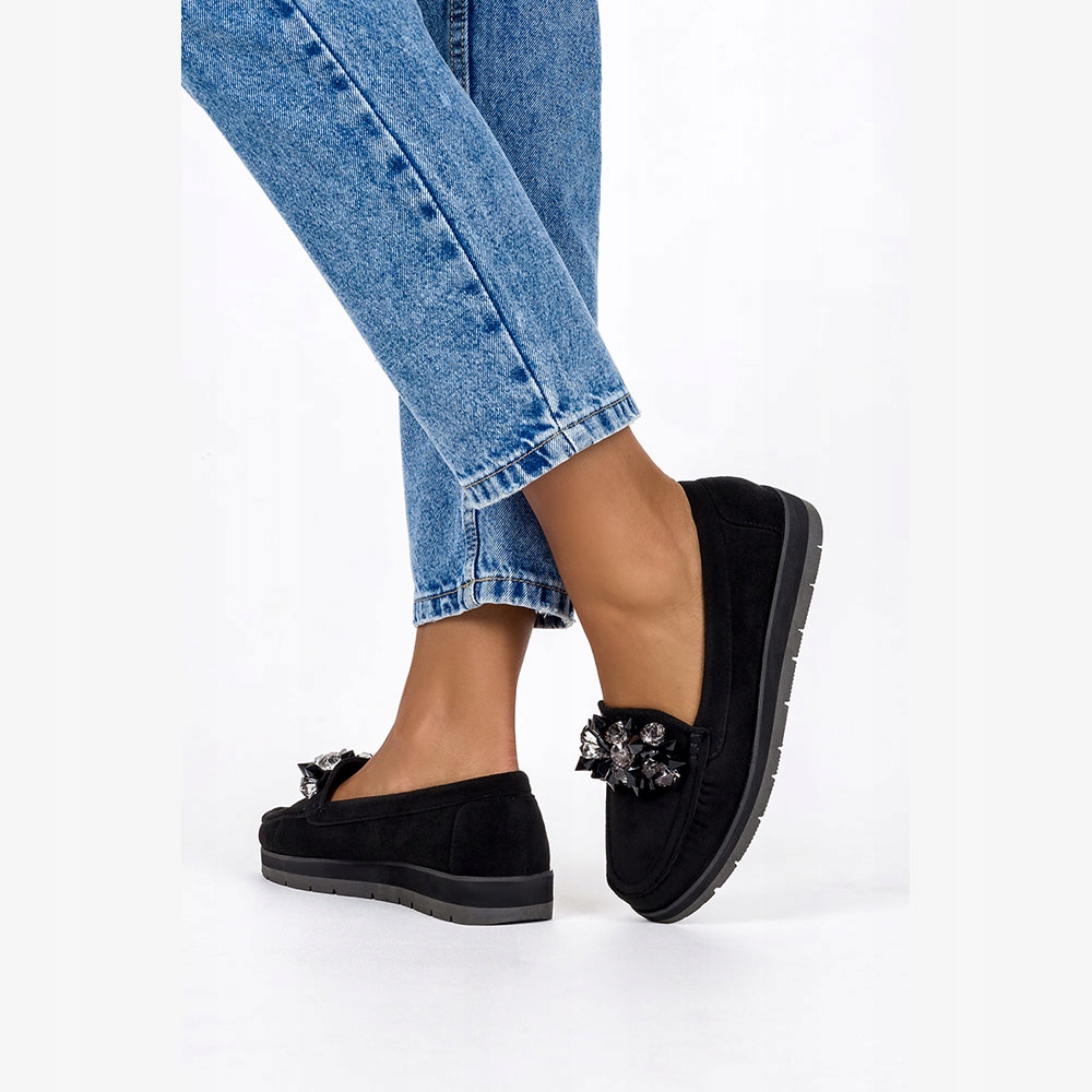 Черные женские лоферы с кристаллами Model D23WX4-B были изготовлены из высококачественной экологической замши, которая гарантирует отличное качество, комфорт и посадку к ноге. Кожаная вставка в обуви - это дополнение, которое имеет решающее значение для комфорта и гигиены ног. Мокасины с кристаллами - это чрезвычайно элегантная обувь, которая представляет собой комбинацию удобства и роскоши. Эти уникальные туфли были созданы для людей, которые хотят выделиться и добавлять блеск в свой стиль. Их характерной особенностью являются кристаллы, которые украшают верхнюю часть. Блестящие украшения придают мокасинам необычное очарование и элегантность. Кристаллы, используемые для украшения мокасинов, тщательно отобраны для обеспечения высочайшего качества и эффективного внешнего вида. Эти уникальные туфли идеально подходят как для повседневных, так и для более формальных случаев. Их можно носить с элегантными брюками или юбкой, добавляя весь стиль и элегантность. Они - отличный выбор для тех, кто хочет добавить немного свечения в свой случайный гардероб. Мокасины с кристаллами - это обувь, которая привлекает внешность с его уникальным дизайном и блестящими акцентами. На Casu вы найдете много дизайнов, которые, безусловно, добавят оригинальность к вашим стилизациям.