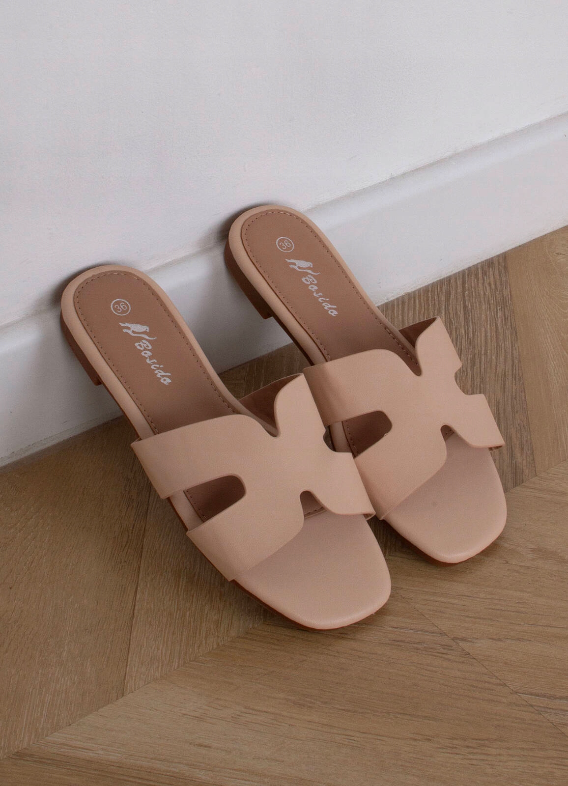ЖІНОЧІ ТАПОЧКИ БЕЖЕВІ ШКІРЯНІ СМУЖКИ 38