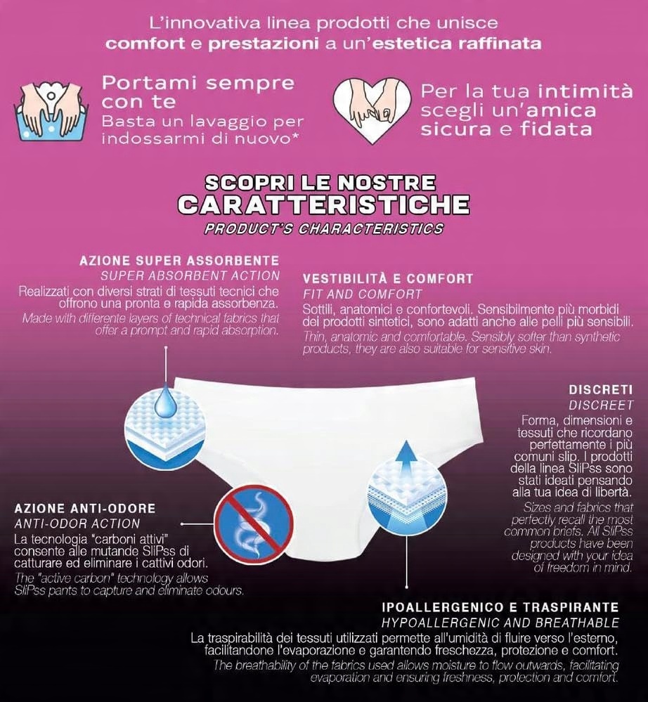 - пункт списка: ПОЛНЫЙ КОМФОРТ: наши впитывающие трусы отличаются воздухопроницаемостью и свойства против запаха, сохраняют кожу сухой, уменьшают неприятные запахи и обеспечивают полное ощущение уверенности и благополучия. НЕЗНАЧИТЕЛЬНОСТЬ И ПРОСТОТА: эти трусики при недержании похожи на обычные трусики, они не шире и не имеют такой толщины, которая может быть ощутима. другими . Простой черный цвет обеспечивает дополнительную свободу действий. ПОКАЗЫВАЙТЕСЬ С ТЯНЕНИЯМИ: с 3 пришитыми внутри несъемными абсорбирующими слоями он предназначен для средних (с 1 поглотителем) или высоких (с 2 поглотителями) проливов, впитывая до 500 мл на каждый. день. Вам не придется беспокоиться об утечках. ПОМОГАЕТ ОКРУЖАЮЩЕЙ СРЕДЕ: возможность стирки и повторного использования значительно снижает количество текстильных отходов, выбрасываемых на свалку. Более того, они поставляются в бумажном конверте, в экологически чистой упаковке, продукт, который заботится о вас и о планете! ЗНАЧИТЕЛЬНАЯ ЭКОНОМИЯ: наши трусики выдерживают не менее 200 стирок и обеспечивают защиту до 12 часов. являются отличной инвестицией для вашего кармана, значительно сокращая расходы по сравнению с другой одноразовой одеждой.