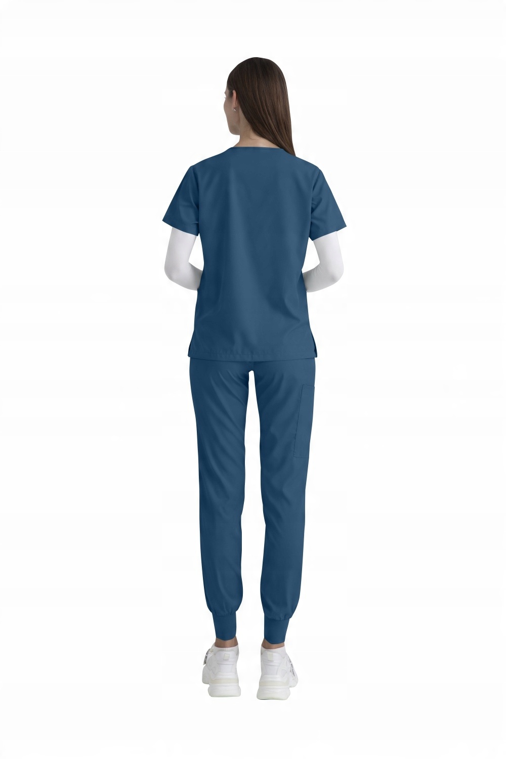 Аптечка состоит из удобной блузки и брюк. Медицинская блузка имеет тщательно обработанный V-образный вырез с деликатной строчкой и практичными карманами.