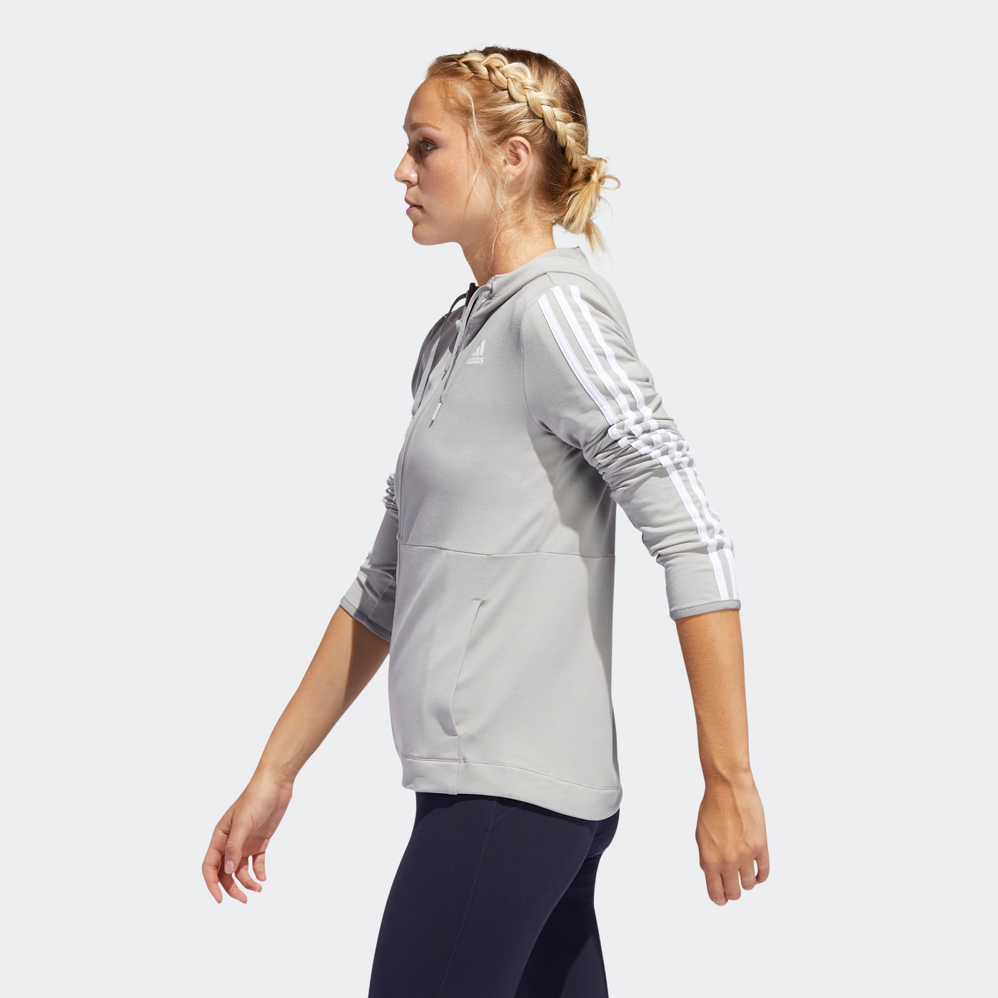Прикройтесь по дороге домой из спортзала. Эта толстовка впитывает влагу до того, как станет холодно, что делает ее удобным вариантом после утренних занятий HIIT. Три полоски на рукавах придают фирменный стиль Adidas.