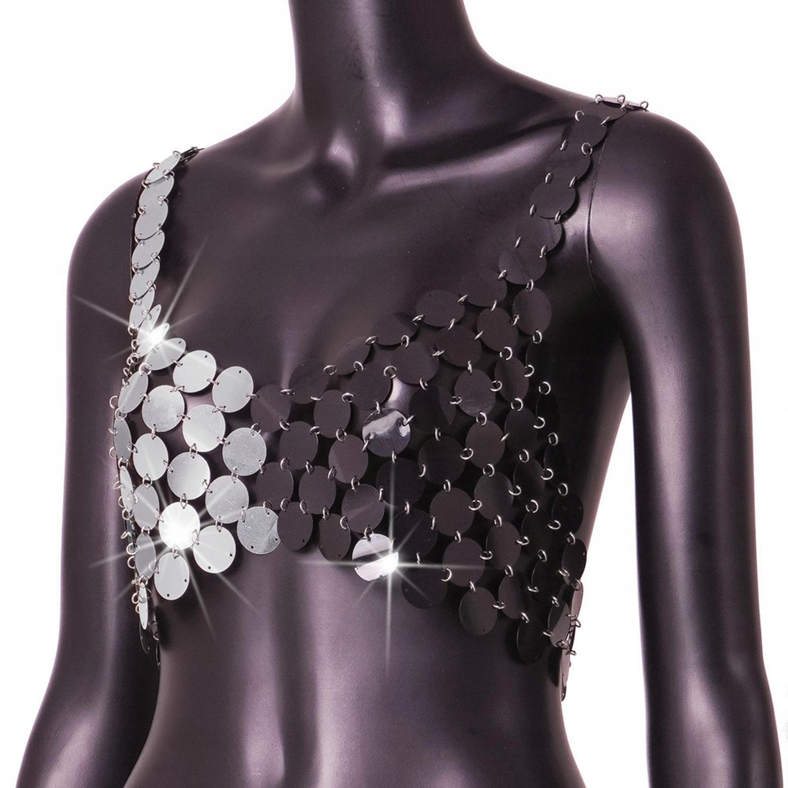 Дизайн: уникальный топ с пайетками, блестящие, сверкающие цвета, низкий вырез и обнаженный живот, блестящие и приятные для глаз.