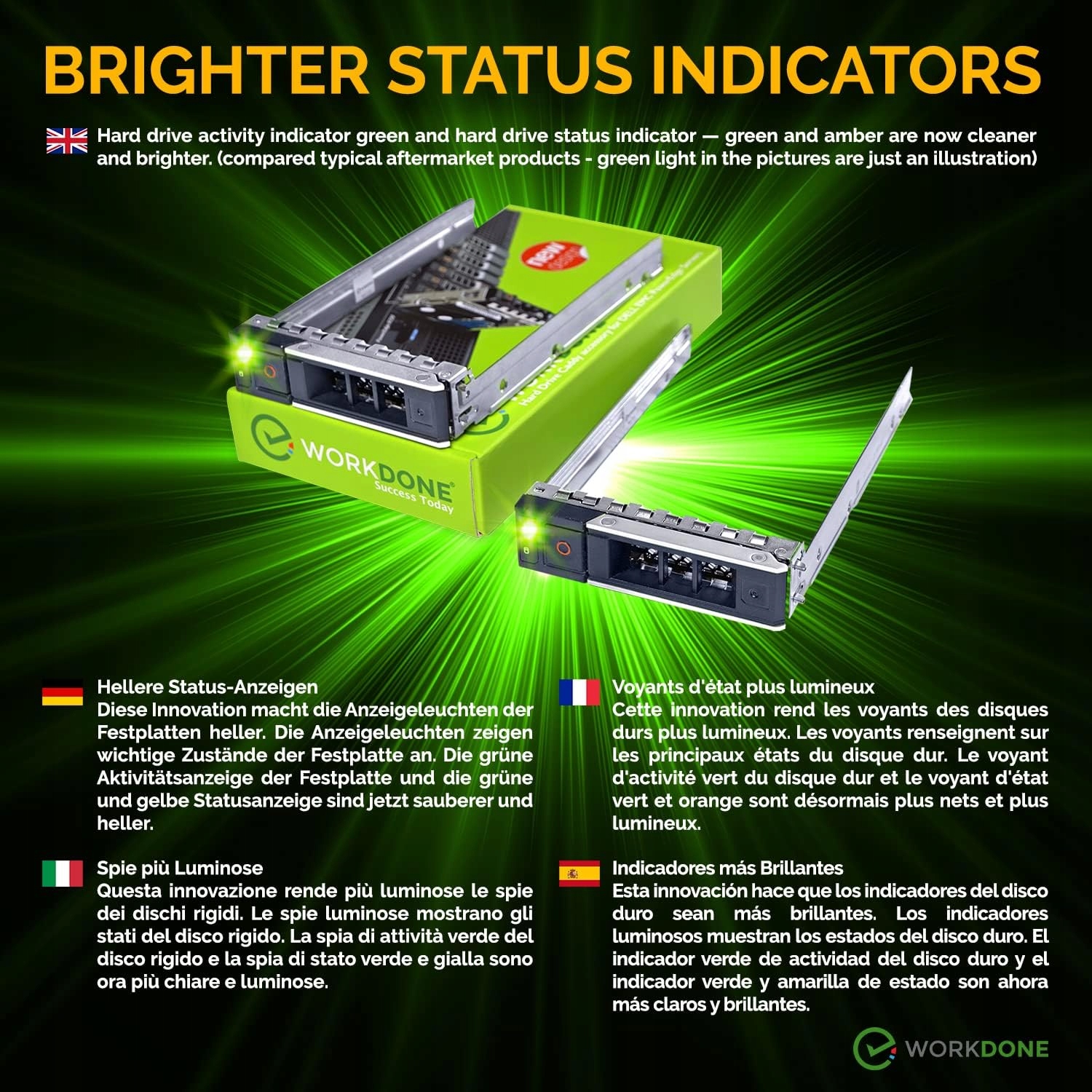 Это новое инновация делает лампы управления жестким диском ярче. Задняя пластина для сервера Dell PowerEdge имеет светодиоды, а сигнальный сигнал светодиодного сигнала передается на специальную пластиковую рельс на переднюю часть привода. Направления указывают на важное состояние с жесткого диска. Индикатор статуса жесткого диска Зеленый и жесткий диск Индикатор состояния - зеленый и янтарь теперь чище и ярче